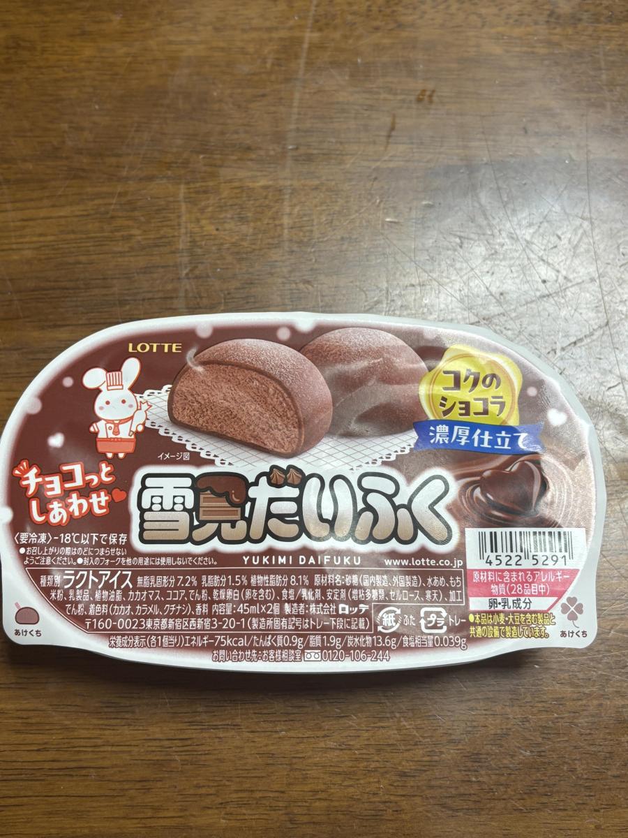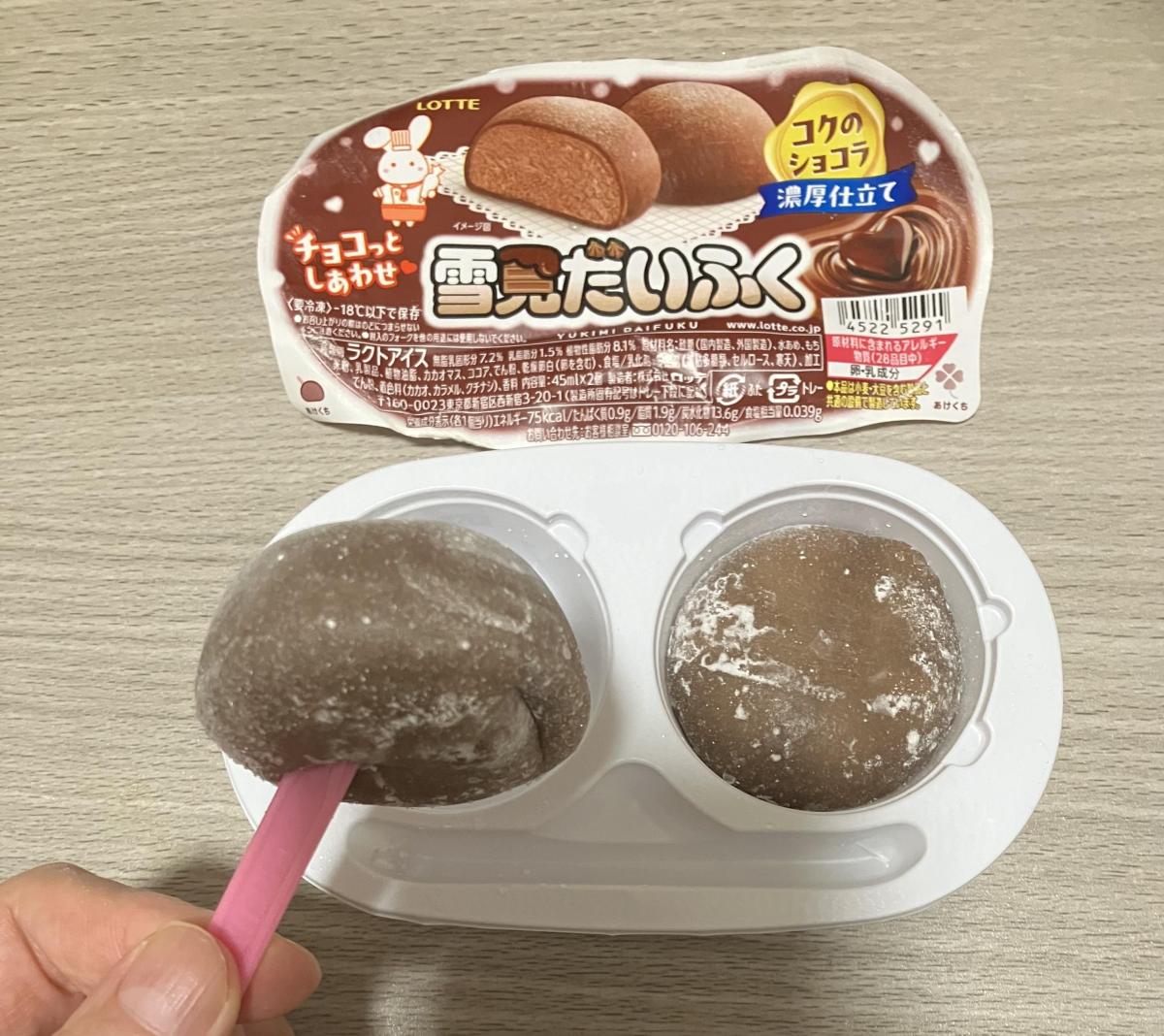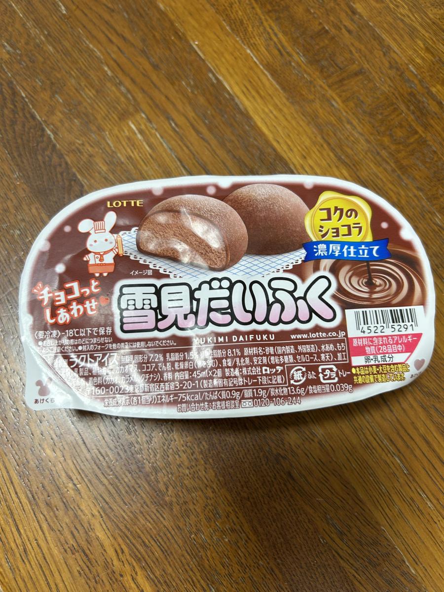 雪見だいふくにショコラが出ていたので気になり購入してみました。少し溶かしてから食べると、もちもち食感のおもちで、ショコラの風味を強く感じられて思っていたよりも濃厚で、コクのあるチョコ感がたっぷりと味わえました。チョコ好きにはぴったりな味わいだと思います。また購入してみたいなと思いました。