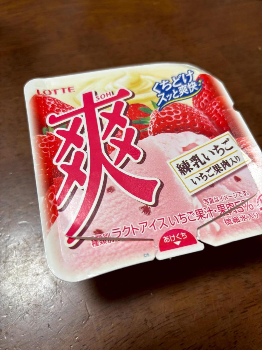 夏になるとたくさん食べたくなる爽シリーズ、いちごを見つけたので購入してみました。開けてみると可愛い!ピンク色のアイス、爽特有の氷シャリシャリ感もありましたがいちごの果肉もたくさん!でかなりイチゴの味もして大満足!とても美味しかったです。しかもこのアイス...この美味しさでカロリー150キロカロリー以下というありがたすぎる数値!!また必ずリピートしたいです。