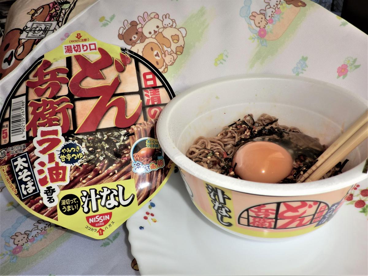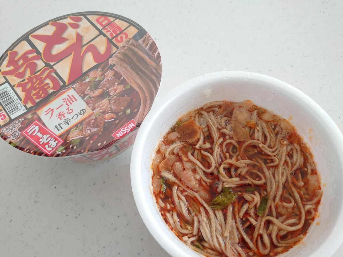 こちらの「ラー油そば」も、いつものどん兵衛さんとはちょっと雰囲気の違うパッケージが気になり手に取りました。