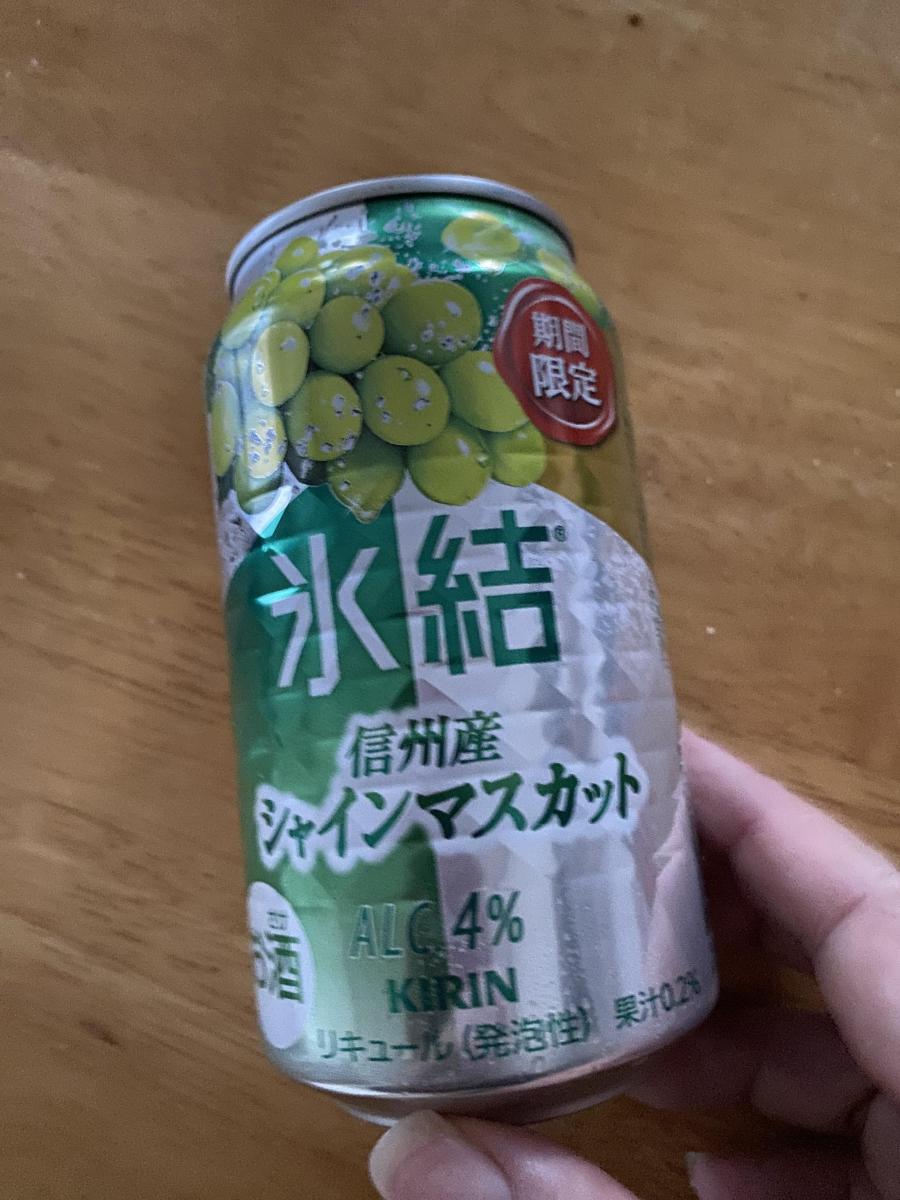 個人的に氷結は、どの味も全体的にアルコール感を感じるのですが、こちらの商品はアルコール感はそこまで強く感じず、シャインマスカットの香りや味を楽しめる飲みやすいものでした。