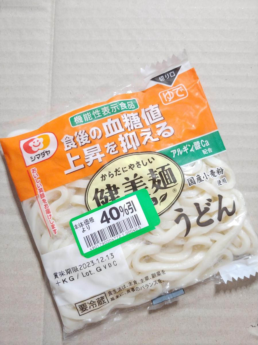 アルギン酸Caというのの効果で食後の血糖値の上昇を抑えられる国産小麦粉使用のチルドうどんです。血糖値上昇は抑えられますが糖質は45gとたっぷり入っているので驚きました。でも、結果的に血糖値は抑えられるのでいいかなと思いました。うどん自体はコシのあるツルシコな美味しい麺でした。糖質制限中なのでこの手の商品がどんどん登場して大変嬉しいです。まだまだ定価がかなり割高なので今後安くなって行くことを望みます。