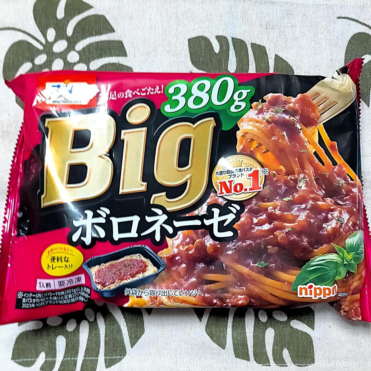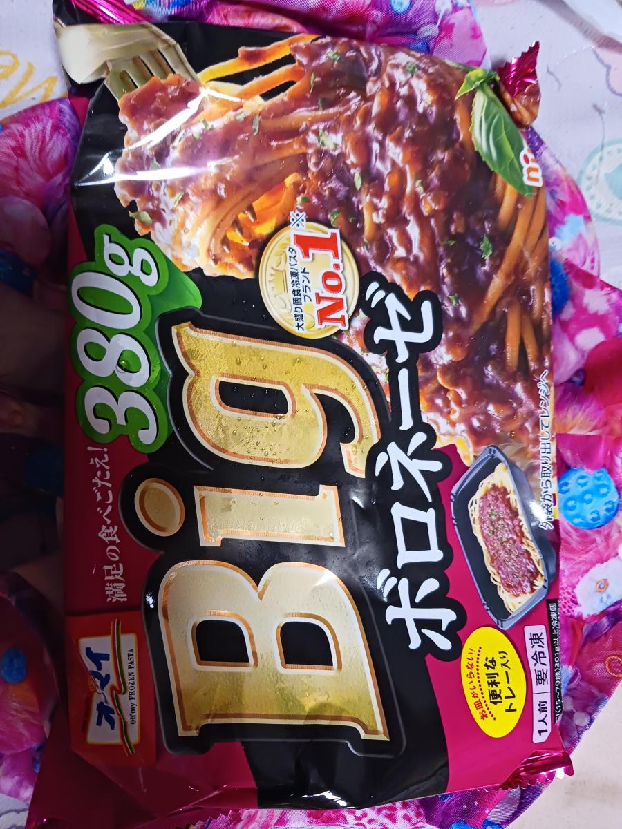 パッケージに表記されている通りでまさにBigで食べごたえありますよ。このシリーズはトレーごとレンチン出来るのでお皿要らずなのがいいですね。冷凍された状態ではボロネーゼソースが少ないかな…と思っていましたが出来あったのをみればソースは十分に入ってました。ひき肉も多めで味付けも濃い大満足のパスタ。