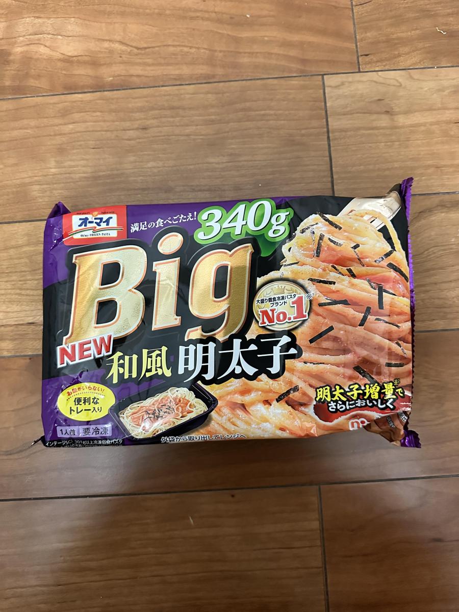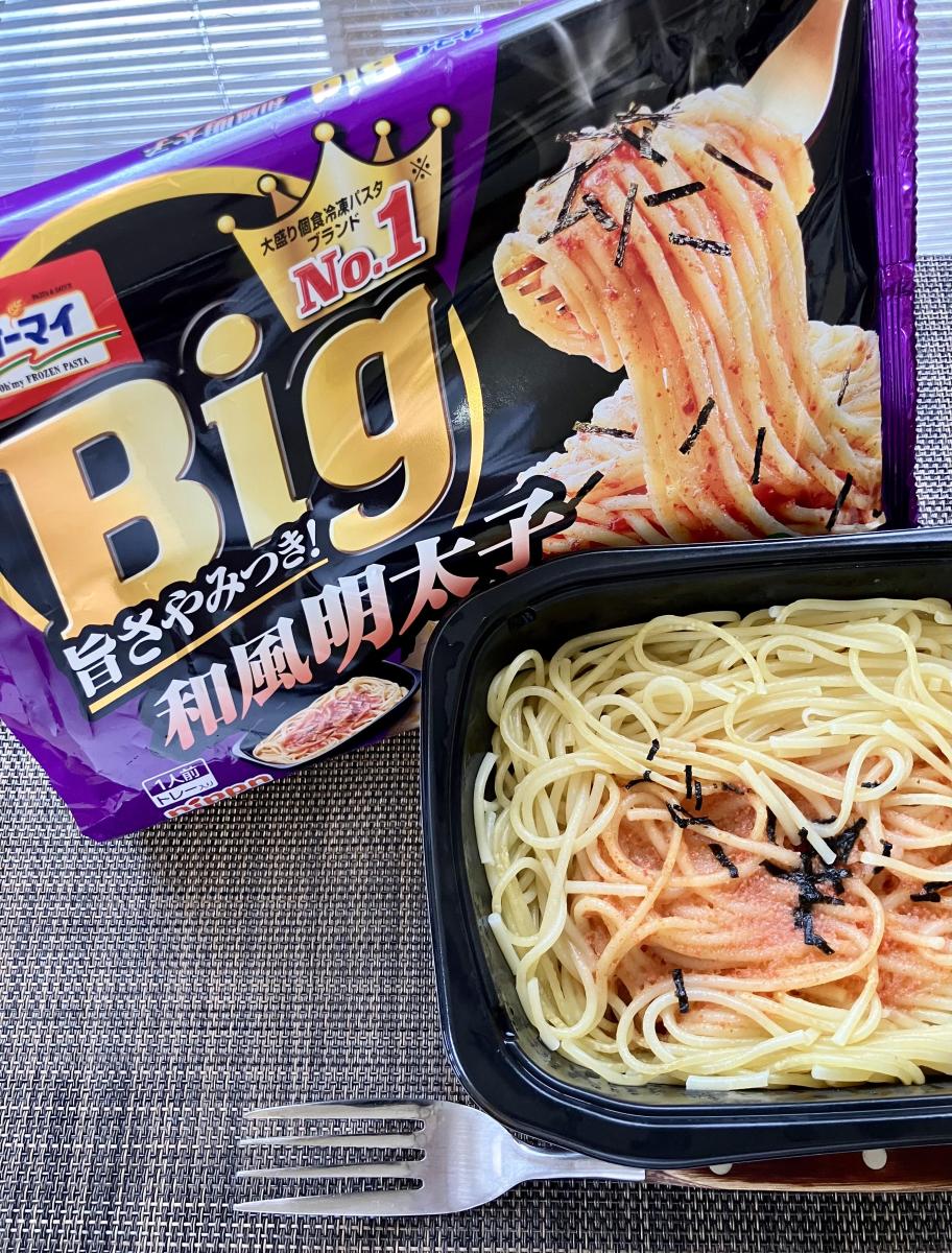 明太子パスタが食べたくなったのでこちらを購入しました。わざわざソースを買って、一人分だけパスタをゆでて作るのも面倒なので、一人分だけの時は手軽な冷凍パスタを買っています。こちらのシリーズはトレー入りなのでお皿すらいらず、トレーごとチンすればいいという手軽さが魅力です。またBigシリーズは麺がたっぷりでとても食べ応えがあります。一度で食べるのはちょっと多いので半分くらい取り分けていて、2回分の主食になるくらいのボリュームです。明太子ソースはあまり量は多くはないですが、食べていてプチプチした食感が楽しめますし、しっかり明太子の味を楽しめるくらいには入っています。和風の味付けもうまみがあっておいしいです。パスタには初めからちゃんと海苔もかかっていて、しっかりした和風明太子パスタです。