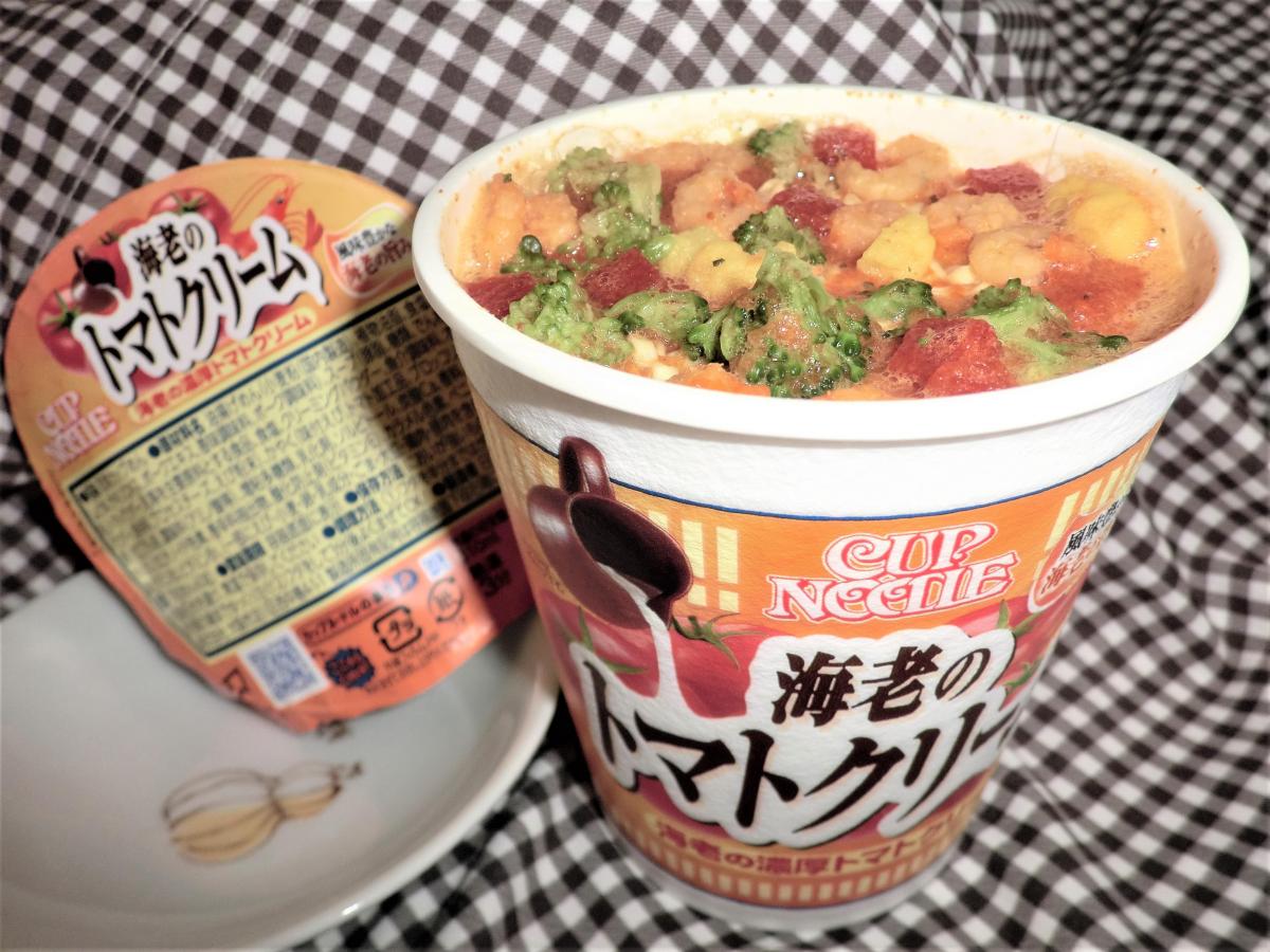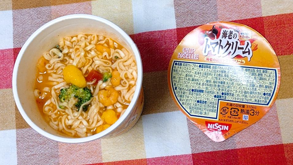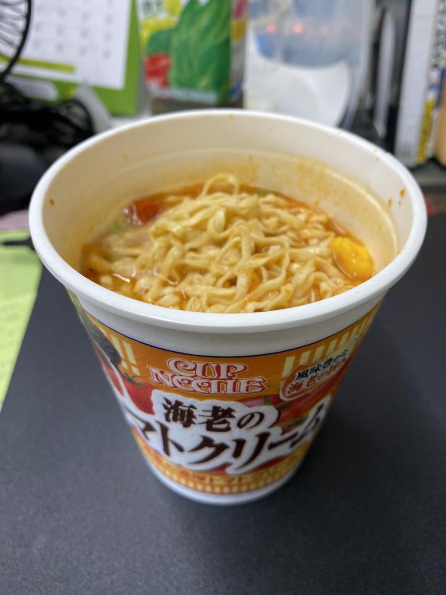 海老のトマトクリームは洋風スープが濃く出たカップヌードルになります。