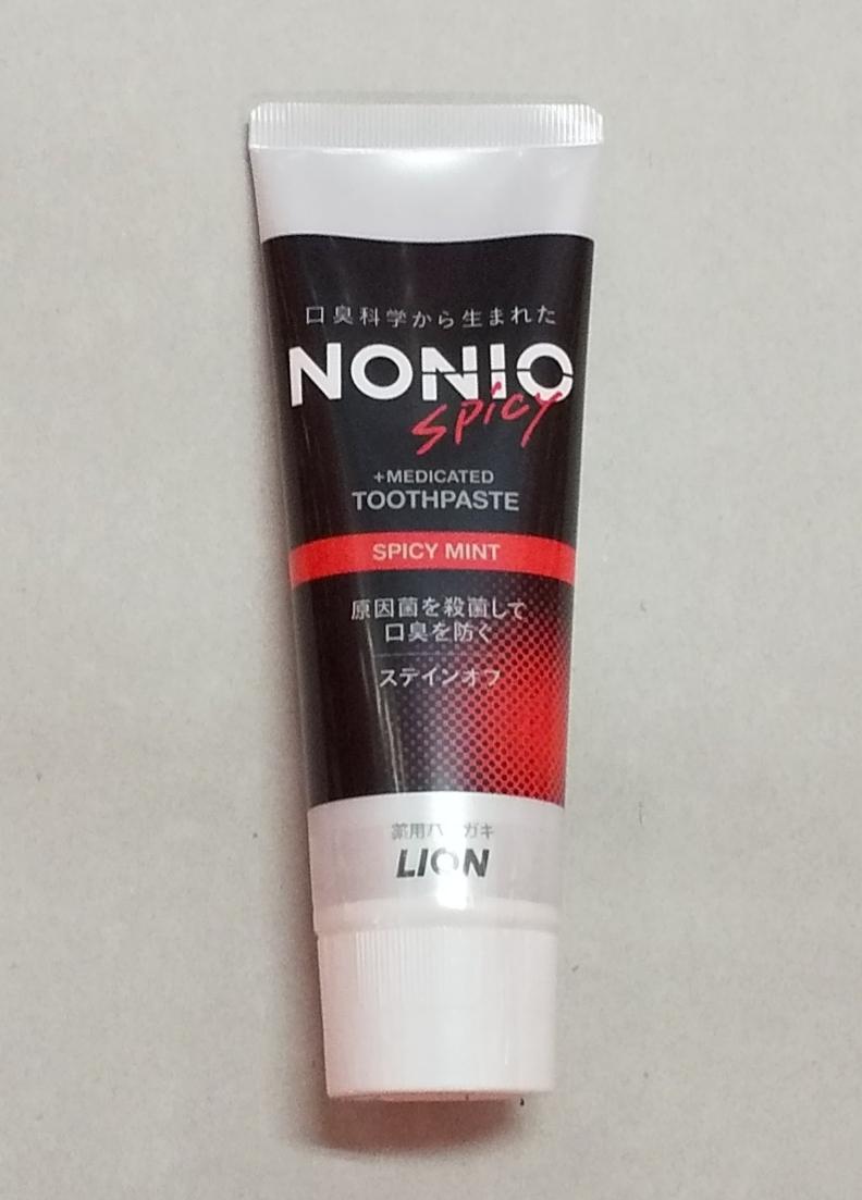 洗口液でNONIOを使っているので合わせて歯磨き粉もNONIOを買ってみました。歯磨き粉のNONIOもいろいろありましたが選んだのはパッケージが黒でインパクトがあった[スパイシーミント]。歯磨き粉の色は普通に白でした、そしてスパイシーとは言ってもピリッとするわけでなくほどよい刺激がある感じです。