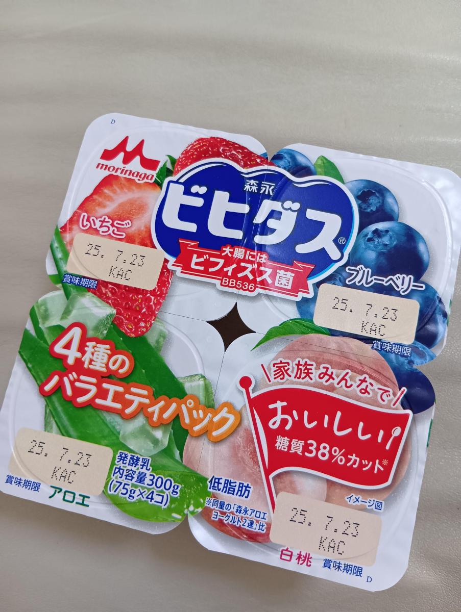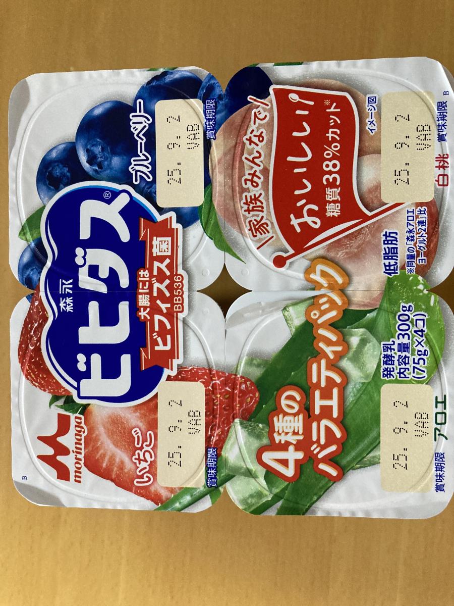 色々な味のフルーツヨーグルトが食べたい!と思った時に最適!4種類のフルーツが楽しめる4個パックのヨーグルトです。どれもなめらかで、ちゃんとそれぞれのフルーツ感、感じられました。個人的には白桃が特に美味しかったです。ビフィズス菌配合、この甘さと美味しさでカロリーカット!なのも嬉しく、1つ75gで朝ごはんの時やちょっとしたデザートに食べるのもとてもオススメです。