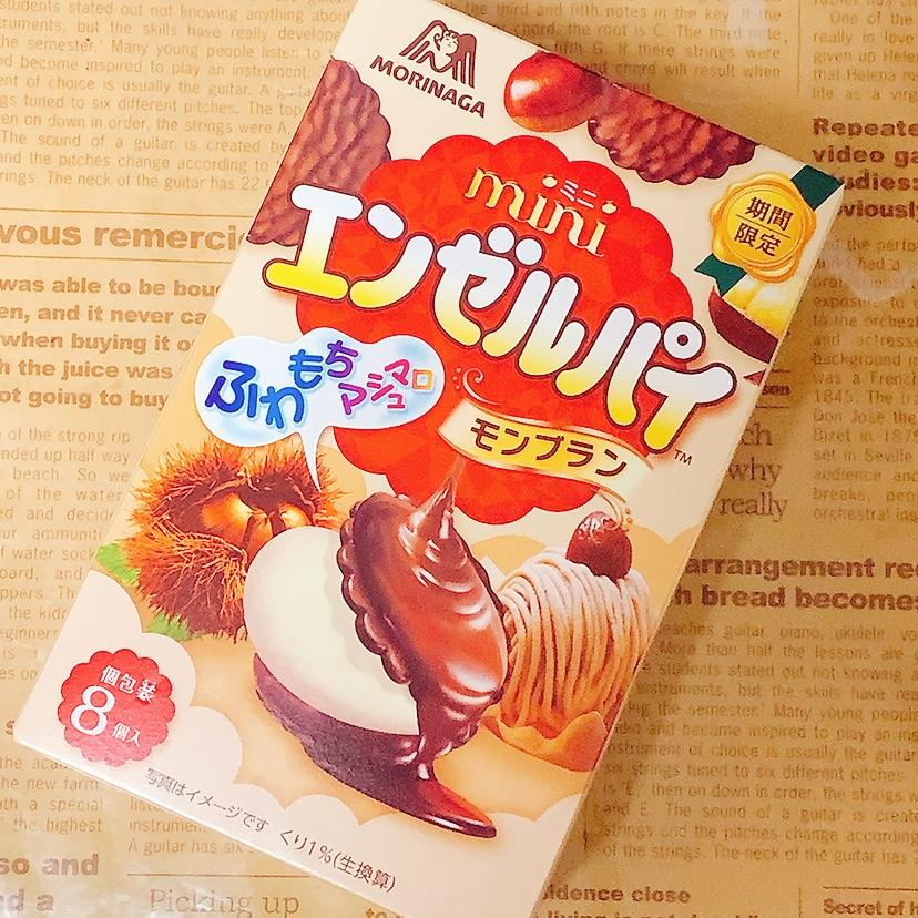 定番のエンゼルパイにマロンペーストがきいて、ほんのりモンブラン風味を味わえます。ミニサイズですがサクサクとしたビスケットとマシュマロのモチっと感もしっかりと堪能出来ます。