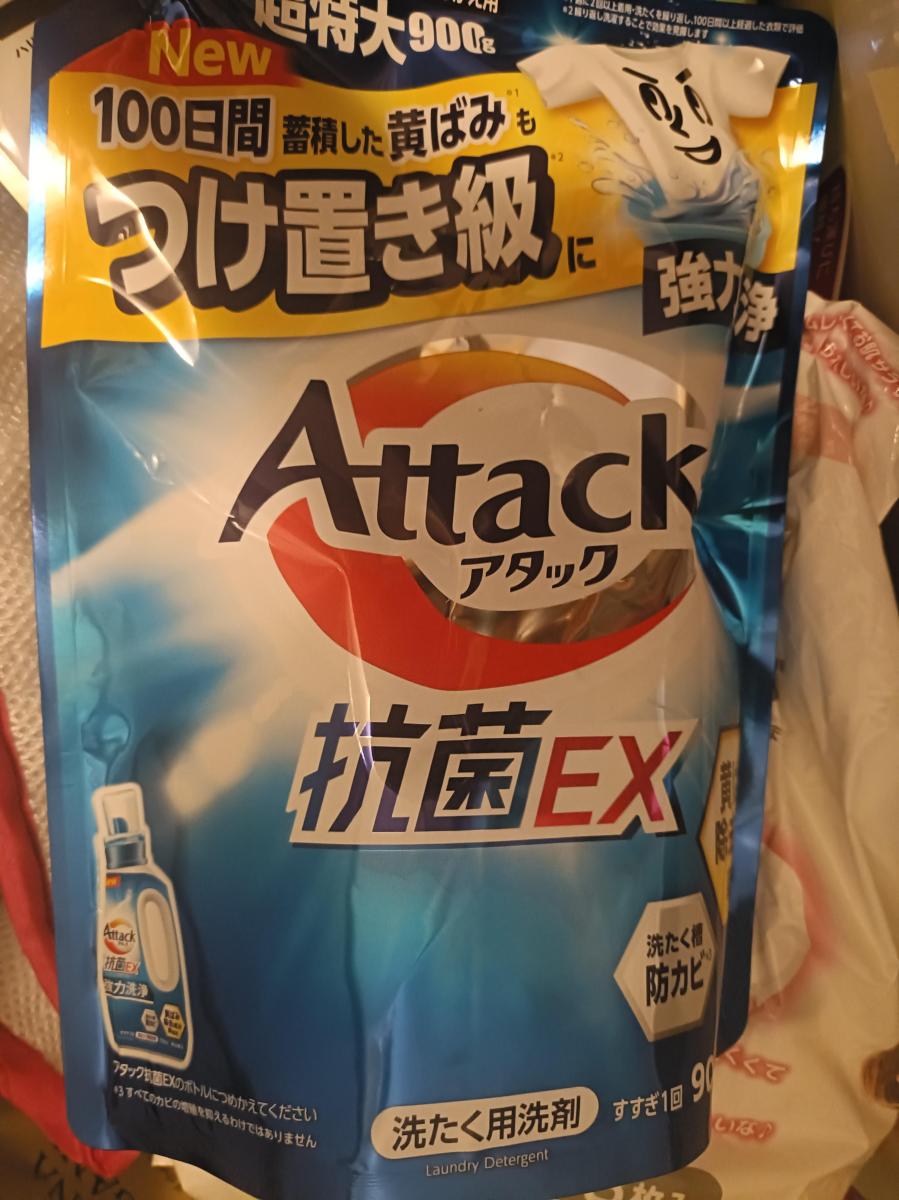 アタックはずっと昔からあって、実家でも使っていて、信頼してる洗濯洗剤です。