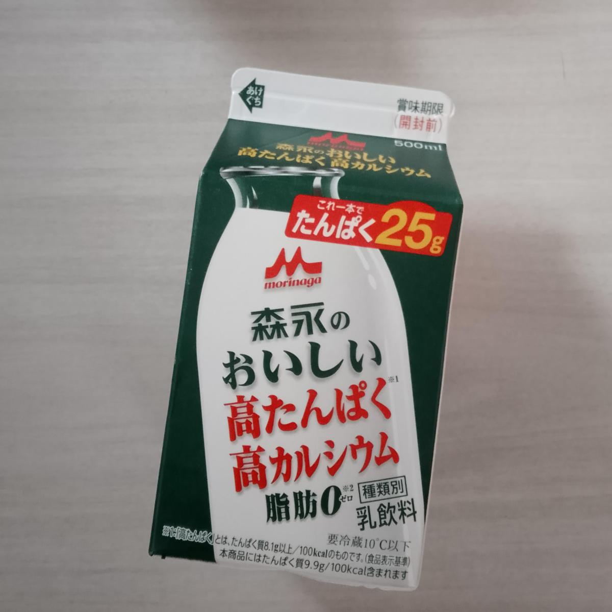 森永のおいしい高たんぱく質、高カルシウム、脂肪0パーセントで飲みやすくておいしかったです。