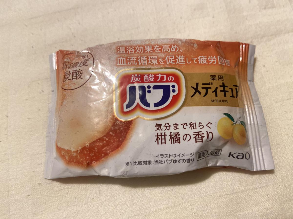 柑橘系の香りが好みなので購入しました。大き目サイズのタブレットで、お湯の中に入れるとシュワシュワ発泡。泡の数は通常のバブの10倍らしく、そのためか身体の温まり具合が普通のバブよりも良い感じです。オレンジ色の鮮やかな湯色に染まり、柑橘の強すぎない爽やかな香りでほんわかリラックス気分…。
