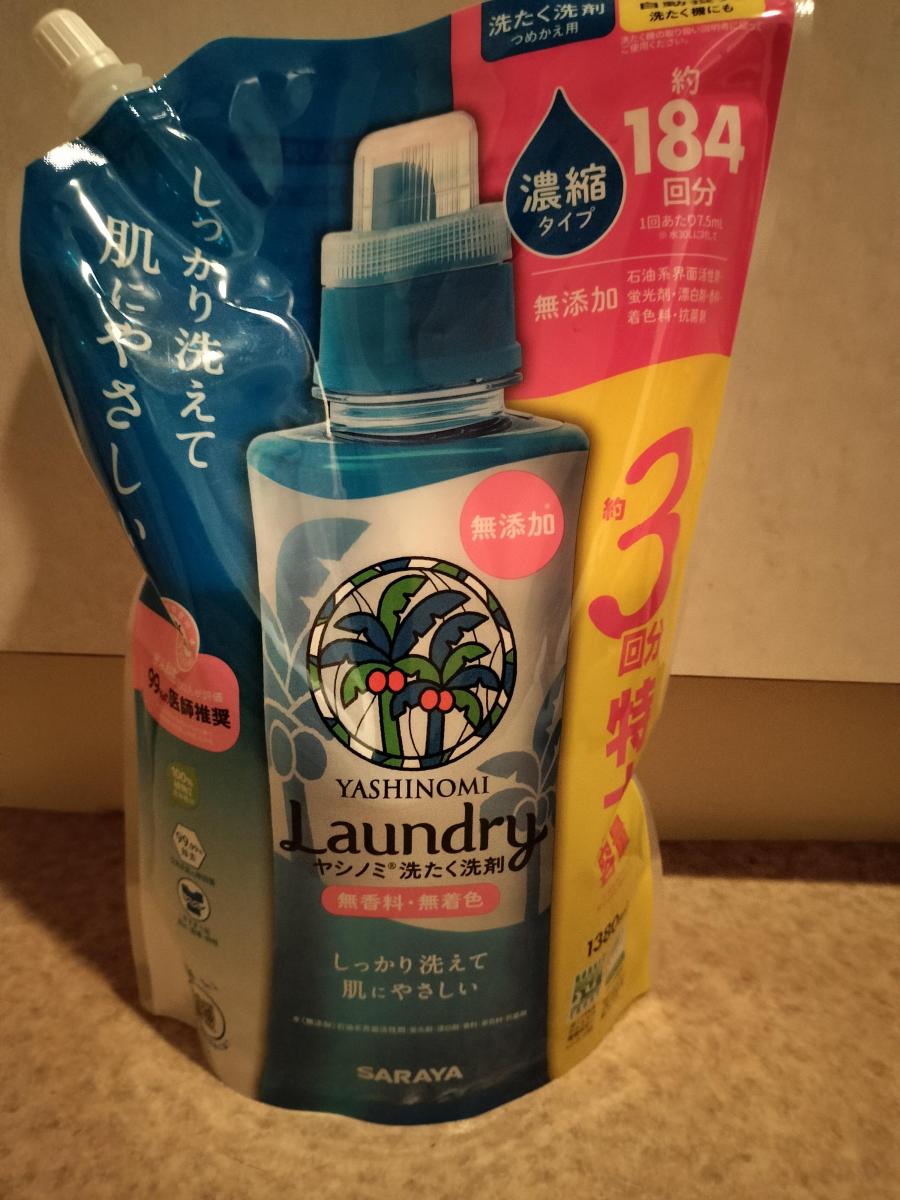 ヤシノミと言えば台所洗剤を使っていましたが、初めて洗たく洗剤を買いました。無香料という事で部屋干ししていてもにおいが気にならず助かっています。ナチュラルなイメージそのままで汚れもサッパリと落ちて気持ちがいいですね!ブルーのボトルもさわやかです。これからも使い続けて行きたい洗剤の1つです。
