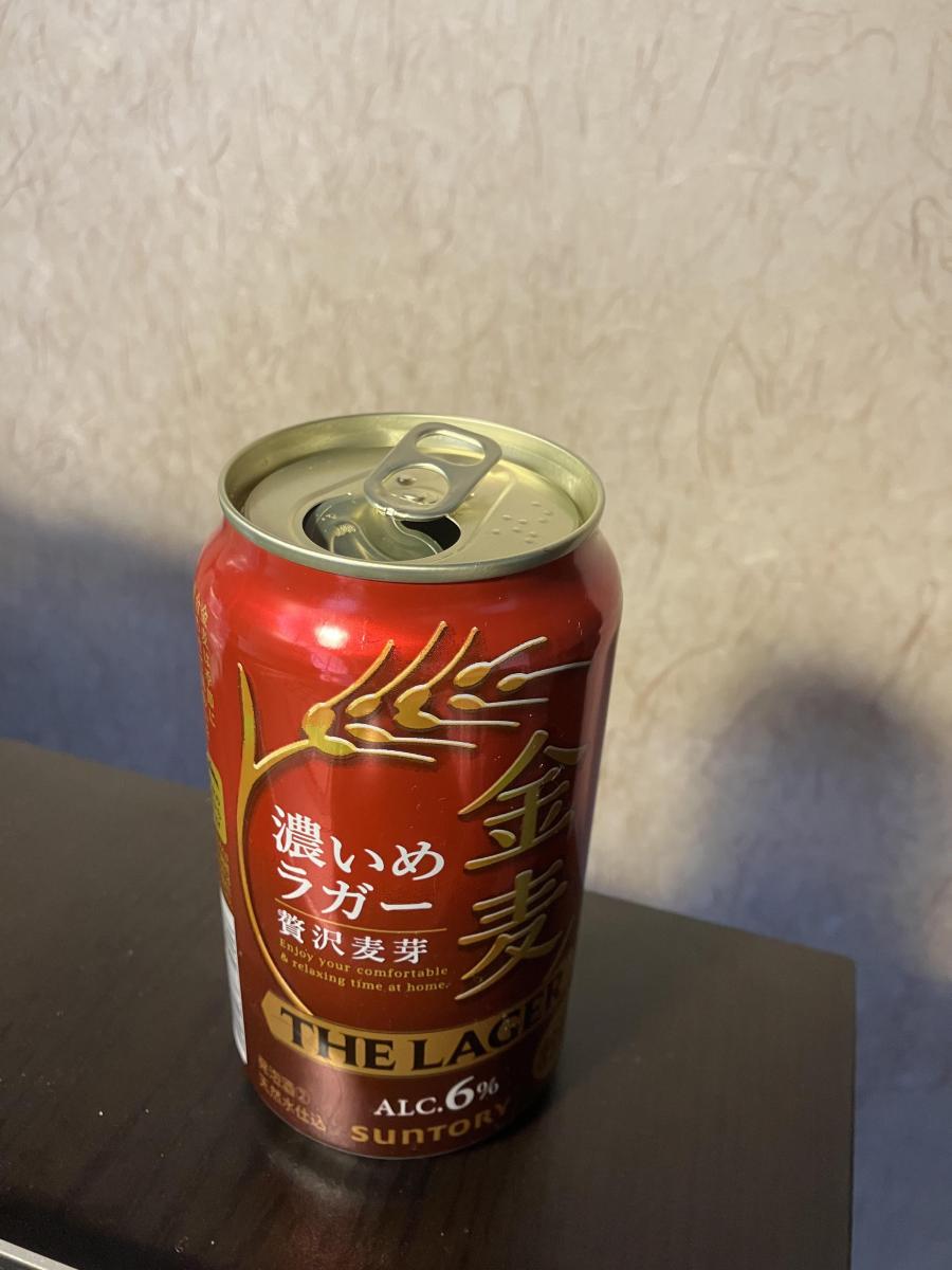 個人的には青い缶の金麦の方が好きですが、こちらは赤い缶で高級感が感じられます