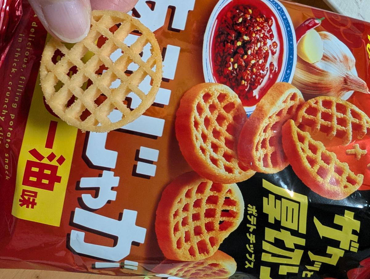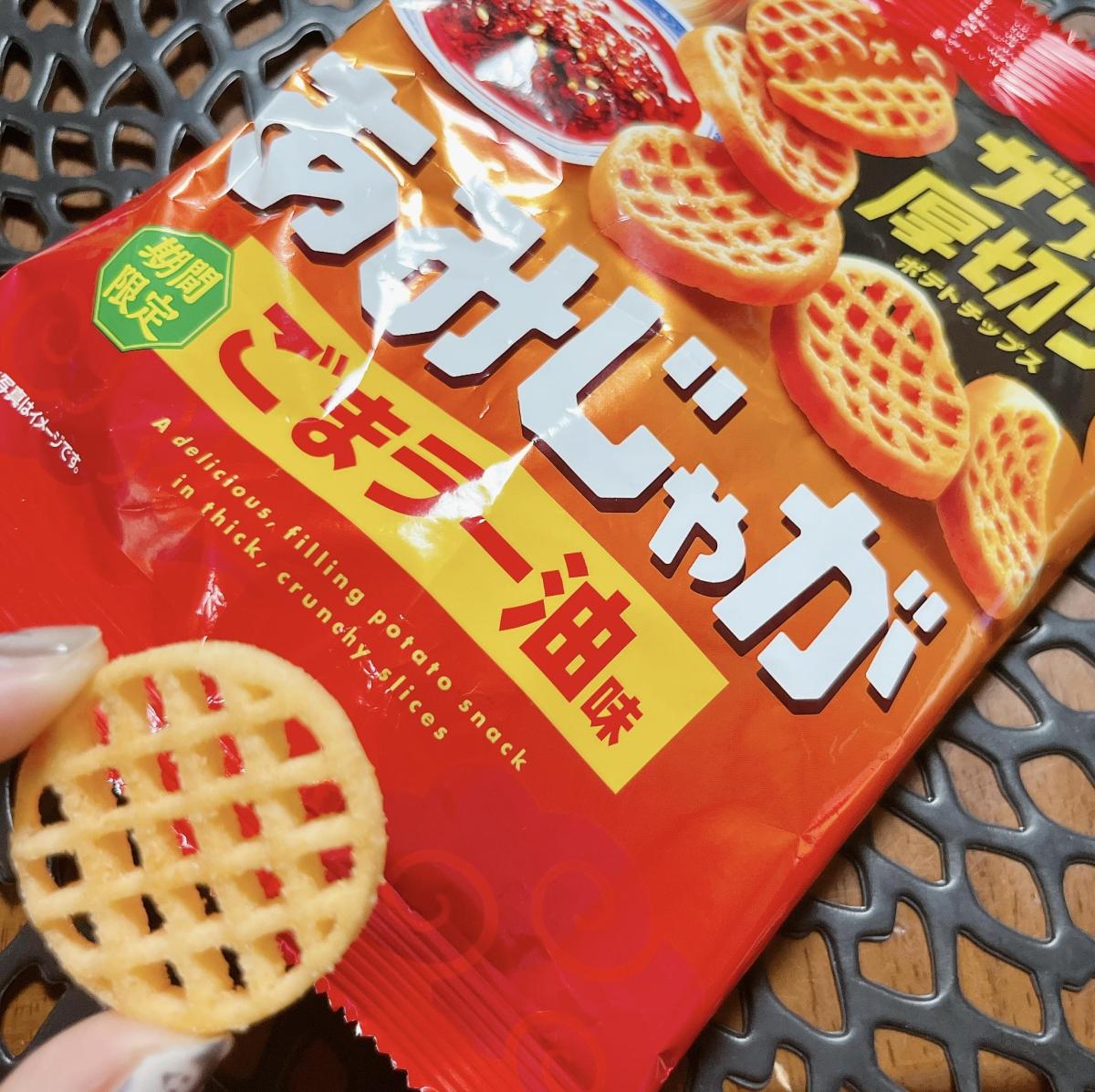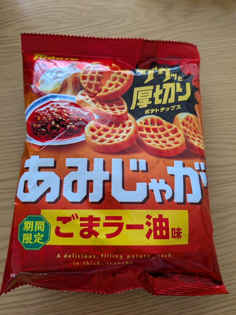 あみじゃが大好きで新しい味だったので購入してみました。ザクザクっと厚切りポテトチップスの食感がよくてやみつきになります。見るからに辛そうなにんにくや味噌のうまみと唐辛子の辛みを効かせた、夏にぴったりなクセになるごまラー油味で、まさにおつまみにもぴったりな味わいだなと思います。コスパもいいです。