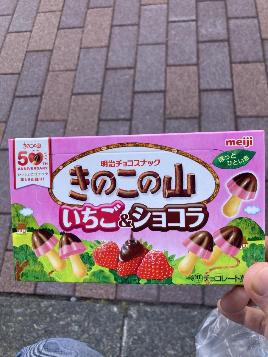 つまみながら勉強しました。懐かしい味だなと思ったら、そうか、子供の時に食べた「いちごつみ」か。きのこの山のクラッカーのサクサク感はいつも通り。食べやすくて美味しいお菓子でした。