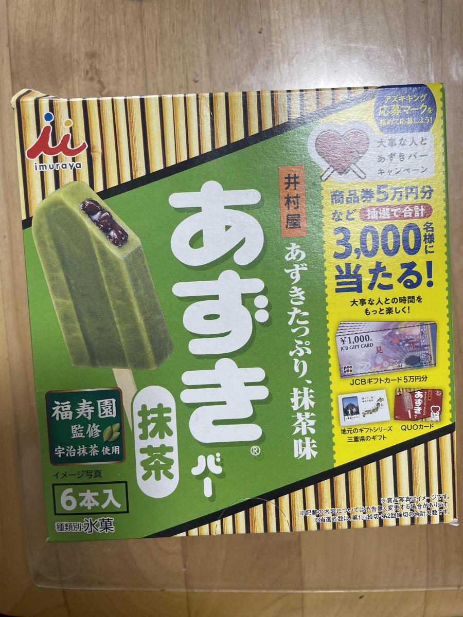 いわゆる普通のあずきバーとは違いました。中央部分にあずきのアイスはありますが、その周囲を普通に抹茶のアイスでおおおっています。あずきバーのあの硬さはなく、普通のアイスのような感じで抹茶がそこそこの厚みでお覆っています。味に関しては美味しいのですが、あずきバーらしさは無かったかな。