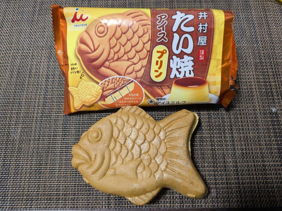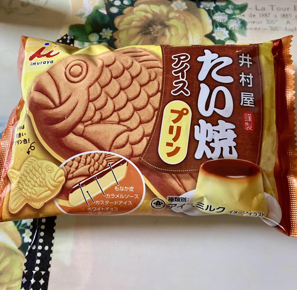井村屋さんから、たい焼アイスのプリン味が出ていました。たい焼にプリン味のアイスなんて、おもしろいなと思いました。