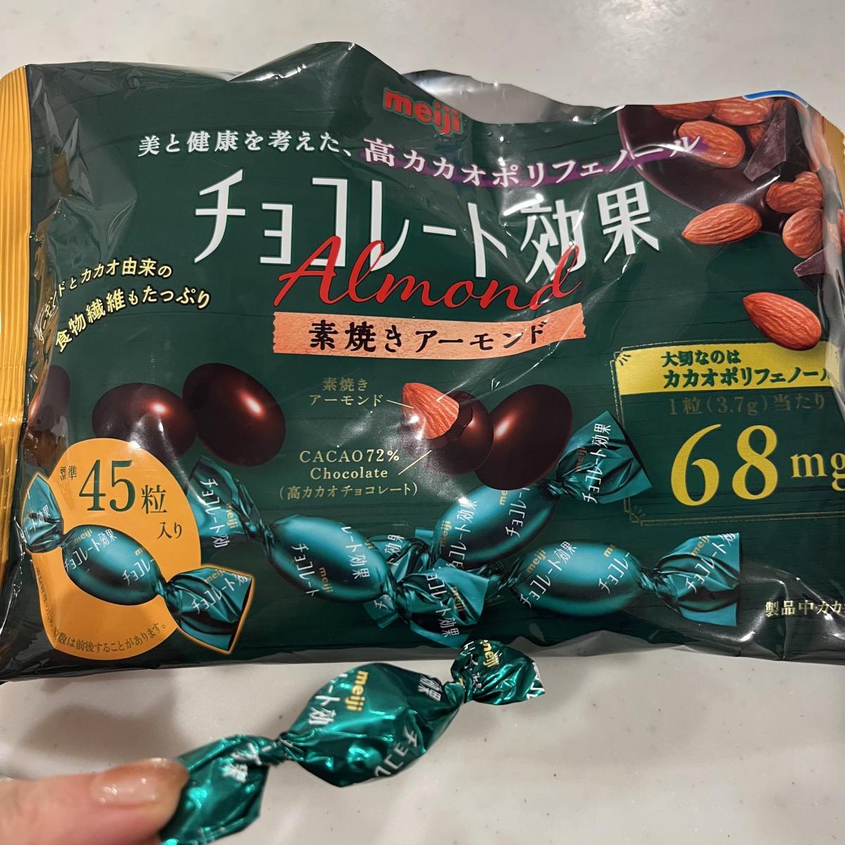 チョコレートが大好きな私が食べ過ぎ注意のために購入した高カカオポリフェノールのチョコレート効果。1粒のカロリーも低めです。カカオのコクと苦味もありつつ、カカオ72%は甘さもまだまだ感じられる絶妙なラインです。45粒入りなのでたっぷり入っていますし小腹が空いてチョコについつい手が伸びる時のためにストックしてあります。アーモンドの香ばしさと食感も満足度高いです。