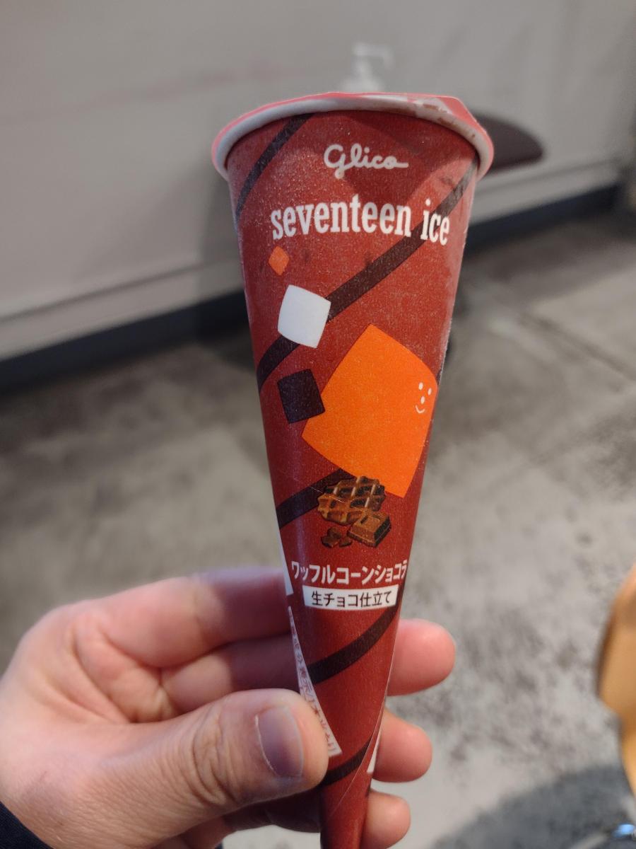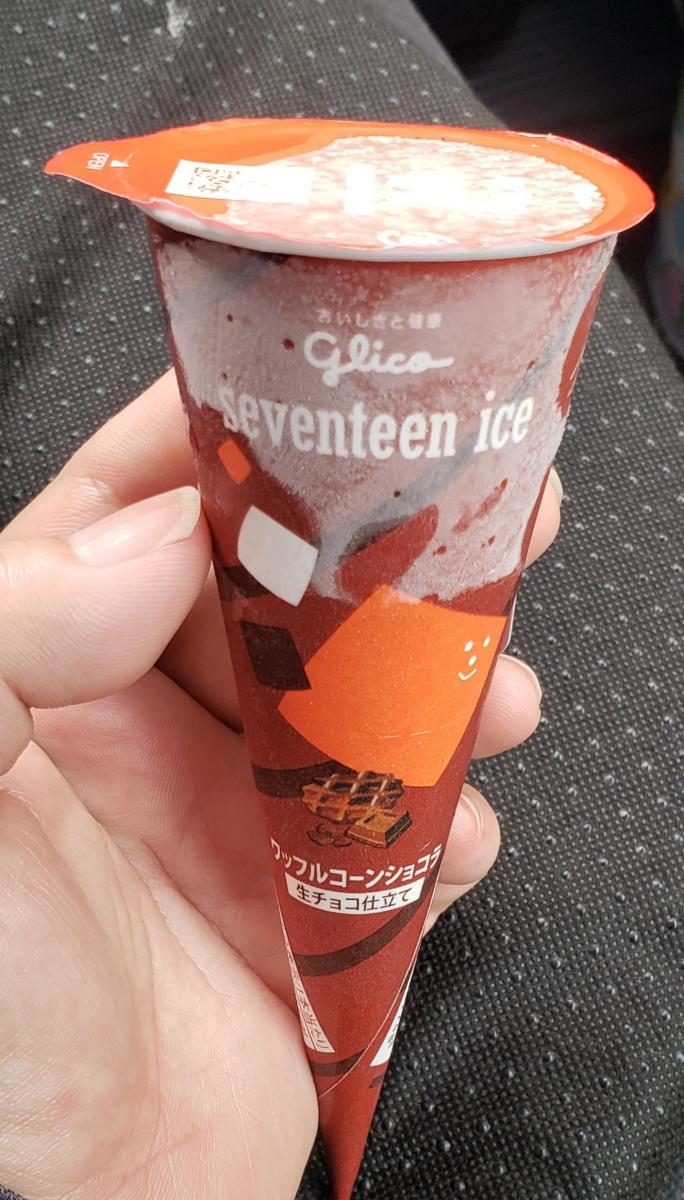 セブンティーンアイスは全体的にあっさりしているアイスで、こちらのアイスもあっさり目ではありましたが、セブンティーンアイスの中では濃いめでコクもあり食べごたえがありました。チョコ風味がしっかりしていて、甘さもほどよくあっておいしいチョコアイスでした。下はコーンになっていて、ザクザク食感が心地よく、甘くておいしいシュガーコーンです。コーンも食べごたえがあるのでしっかりお腹いっぱいになり、ちょっとした自分へのご褒美になりました。