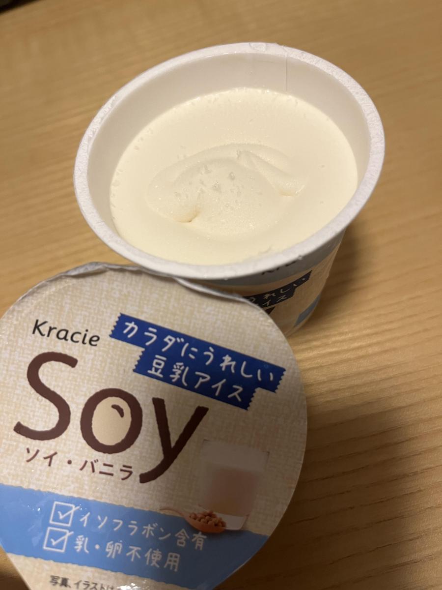 体によさそうなクラシエ Soyバニラ味が気になり購入してみました。豆乳独特のクセを抑え、普通のバニラアイスのような生クリームのような香りがいいです。豆乳の味は強すぎないので、食べやすい味わいです。思ったより甘くて柔らかでなめらかな食感です。ですが、食べてくうちに若干ヌメリ感?ちょっと独特な舌触りが気になりました。