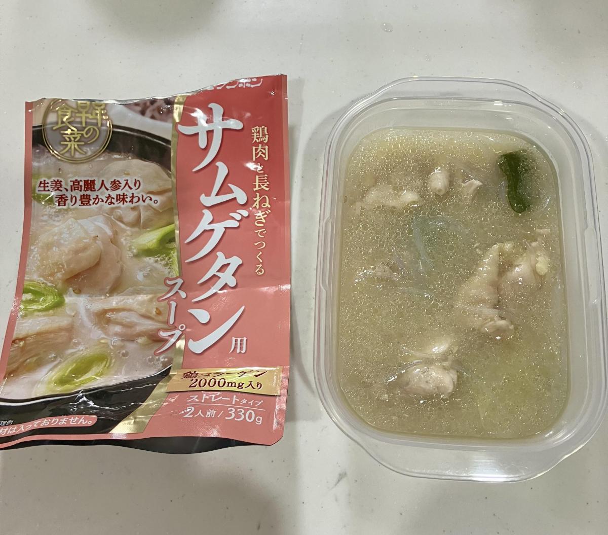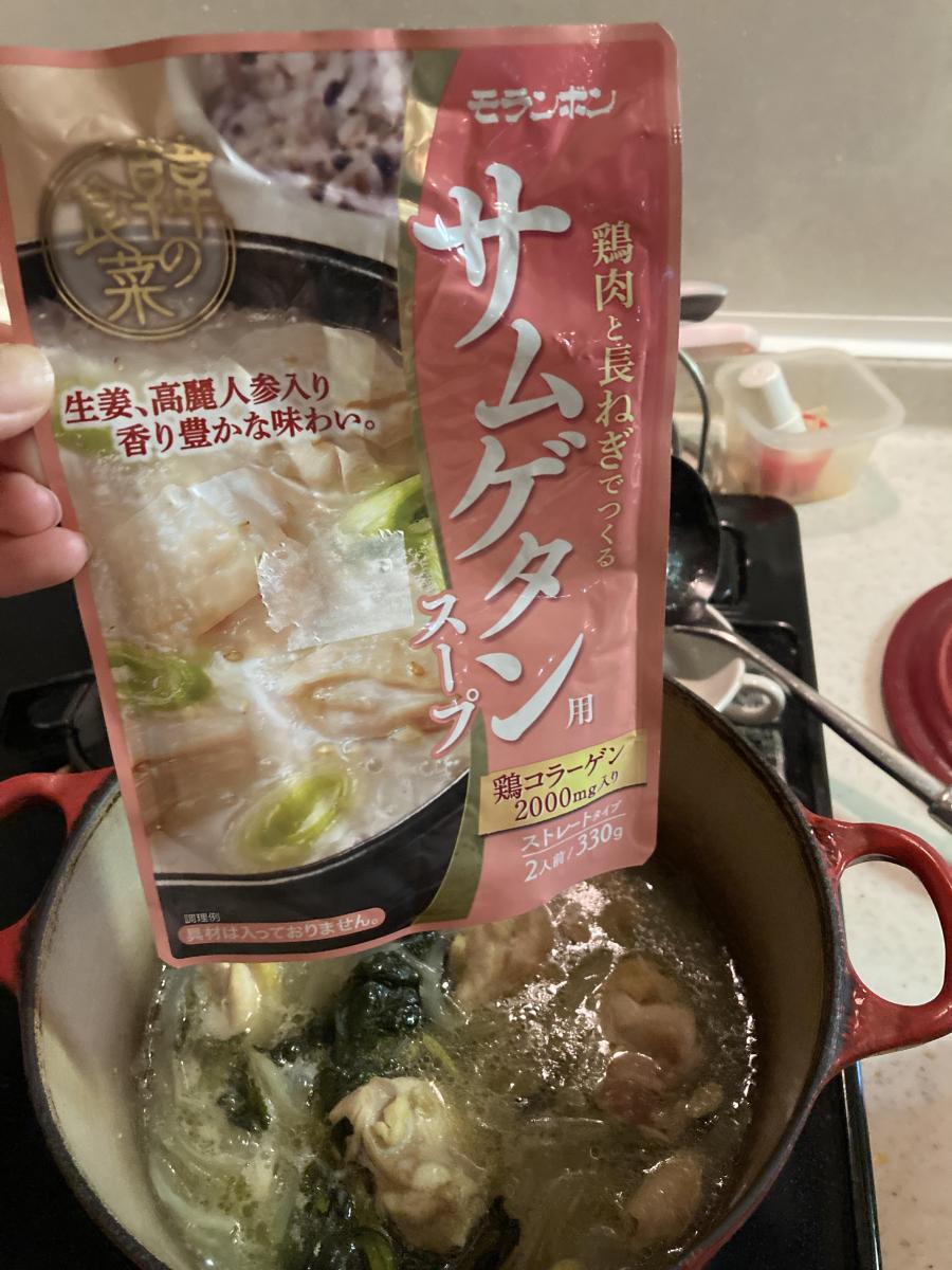 白いとろみのあるスープです。慣れない香りは高麗人参のものでしょうか?苦手な人もいるかもしれませんが私は気になりませんでした。2人分とありますが、少し水を足して三人分にしても我が家は美味しくいただけました。生姜、高麗人参の身体を温めるものが入っているところに、鶏肉、ネギなどを入れさらに身体を温めます。わたしは豆腐も入れるのが好きです。寒い日はこういうのが嬉しいです。今年もしっかり食べて風邪をひかないで過ごしたいです。