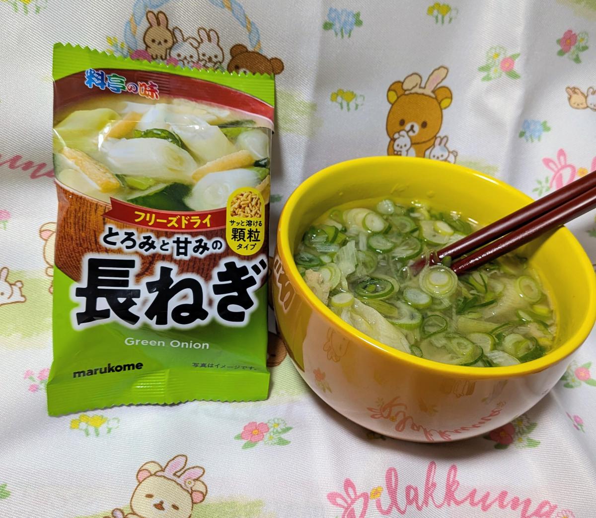 お湯を注ぐとふわ〜っと具材が広がります。ネギがたっぷり入っていたので嬉しくなりました。ほかにはワカメや揚げなども入っていてとっても具沢山。食べごたえがあります。野菜のシャキシャキとした食感も良かったです。お味噌汁も出汁のよくきいたまろやかな味わいでとても美味しいです。野菜の旨味と甘味も感じられます。お手軽に食べられるのに満足感の高いお味噌汁だと思います。