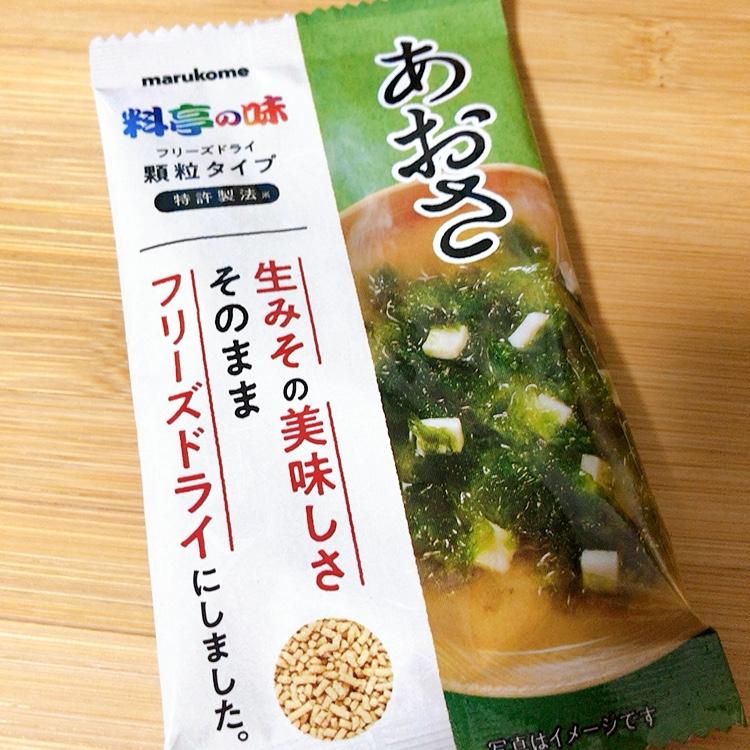 おいし味噌汁がお湯を沸かすだけでOKな便利な存在。特にあおさはどんな料理でも合うので、重宝する味噌汁の具材である。海外に行く際にもかさばらないので予備食料として持っていく。