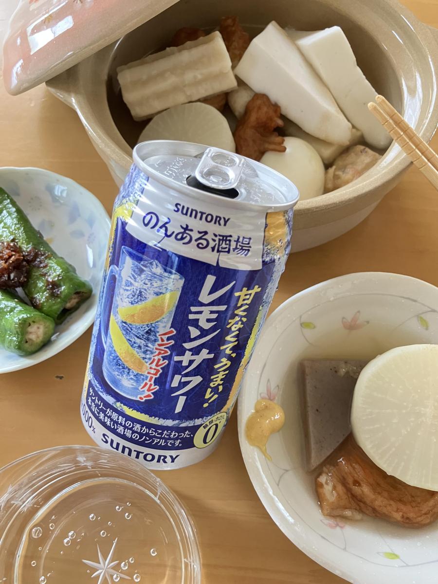 おでんと甘辛唐辛子炒めを食べながら飲んで気分よくいただけました。食事に合うノンアルです。