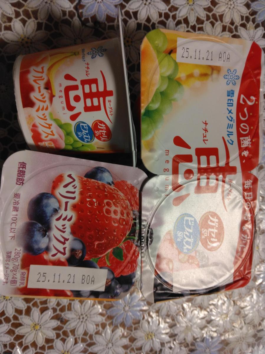 【恵】ヨーグルトが数種類お買い得コーナーで売られていて、どれにしようか悩んだ結果、こちらのフレーバーを購入しました。ミックスなので楽しみながら食べました。ベリーミックスはツブツブ食感が良かったです。