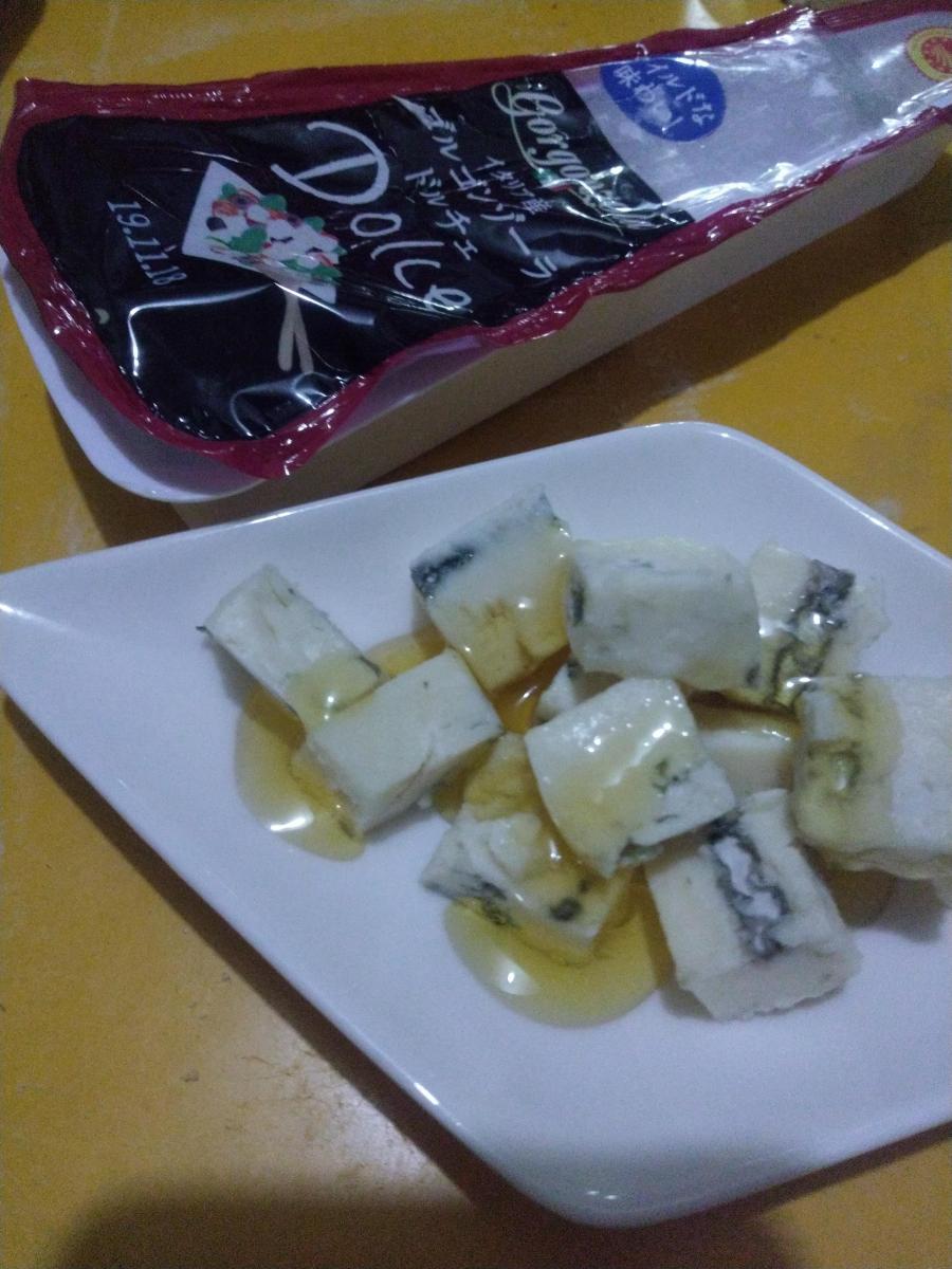 梨をピザにしようと思って、なぜかゴルゴンゾーラとハチミツだっとひらめいた。どこかで見たのかも。そこでお店に行ったらゴルゴンゾーラが2種類あって悩んでしまいました。ちょっと調べてピザにはピカンテにしました。ドルチェってケーキとか甘いもののイメージだったのではちみつかけておつまみにしました。甘さとしょっぱさのバランスがよい。ゴルゴンゾーラのクセはマイルドで食べやすくて美味しい。やっぱりワインかな。