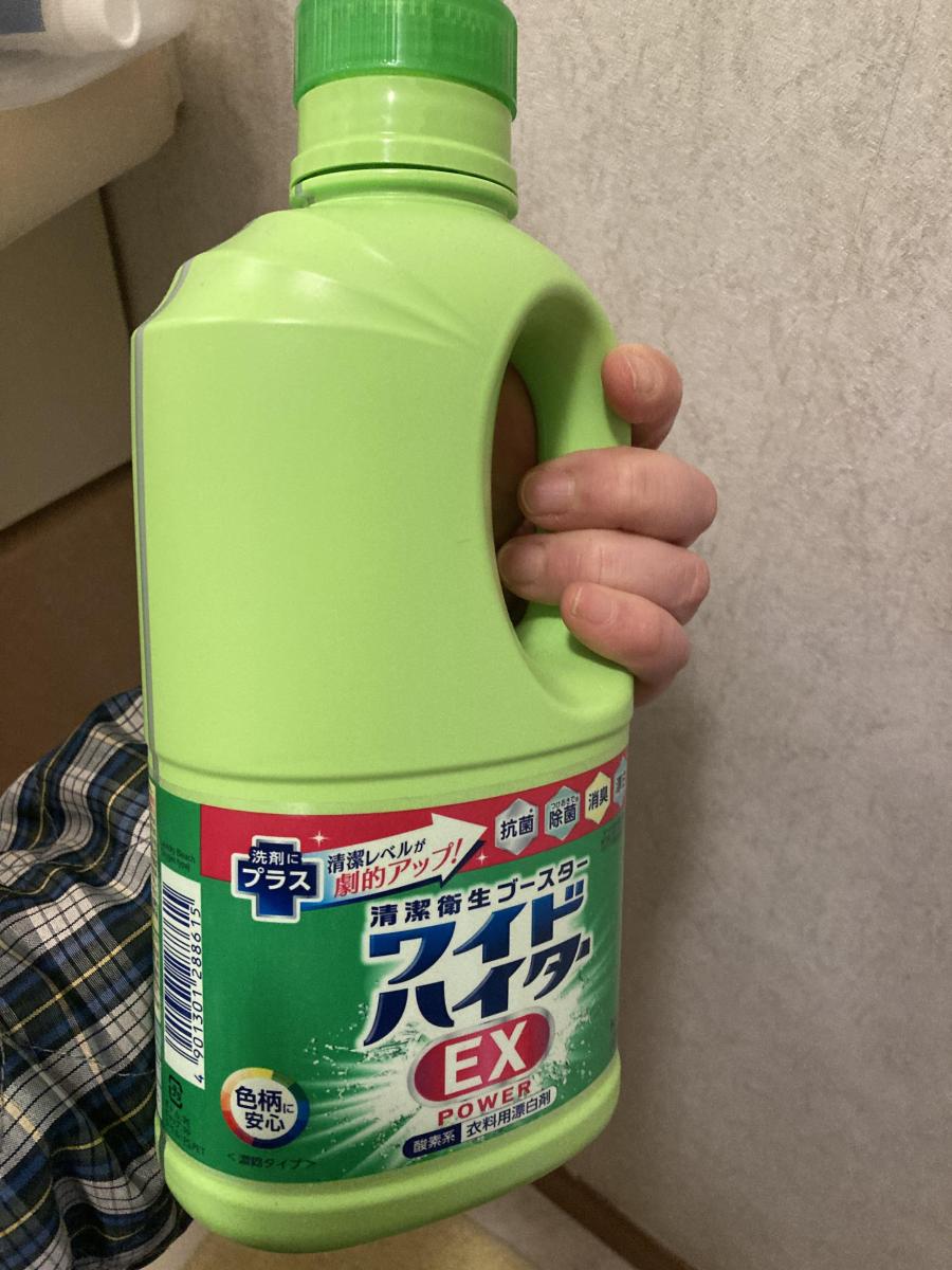 漂白剤はずっとワイドハイターEXです。ワイシャツの襟や袖にスプレータイプ(最近は売ってないのか、液体を詰め替えて使ってます)をシュシュッとするだけで洗濯すると汚れが落ちるので助かります。他の柄物とも一緒に使えるので重宝してます。漂白剤自体のニオイもないし、洗濯槽洗いにも1袋全部入れたら綺麗にできます。コスパもいいし色々使えて便利です