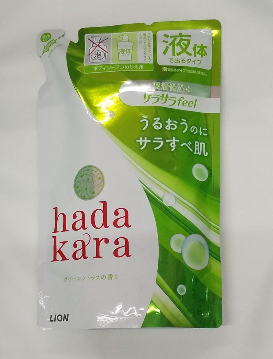hadakaraシリーズは香りも使い心地も良く気に入っています。今回は『サラサラfeelグリーンシトラスの香り』。