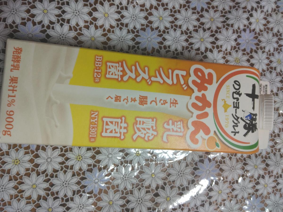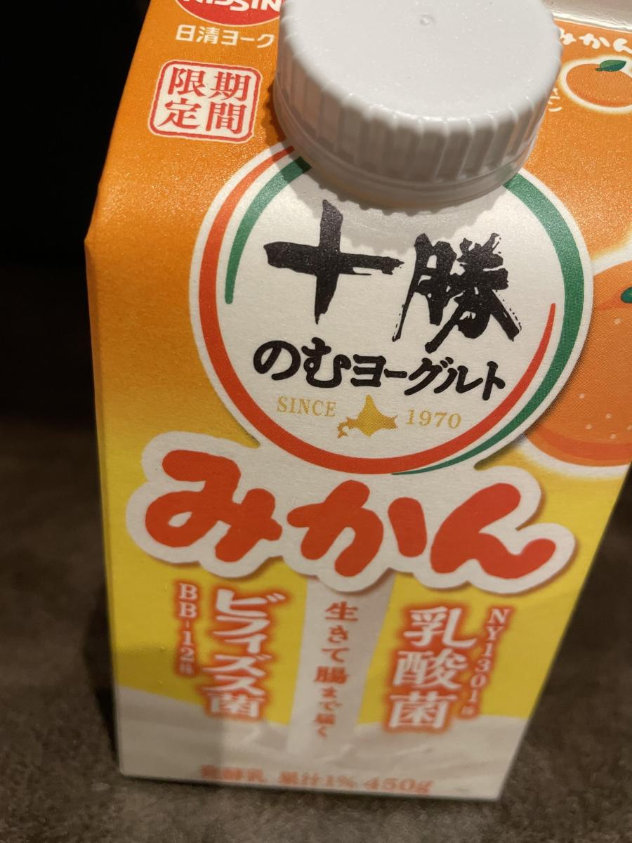 十勝のむヨーグルトのみかん。乳酸菌400億個入っていてお腹に良いこと間違いなし!