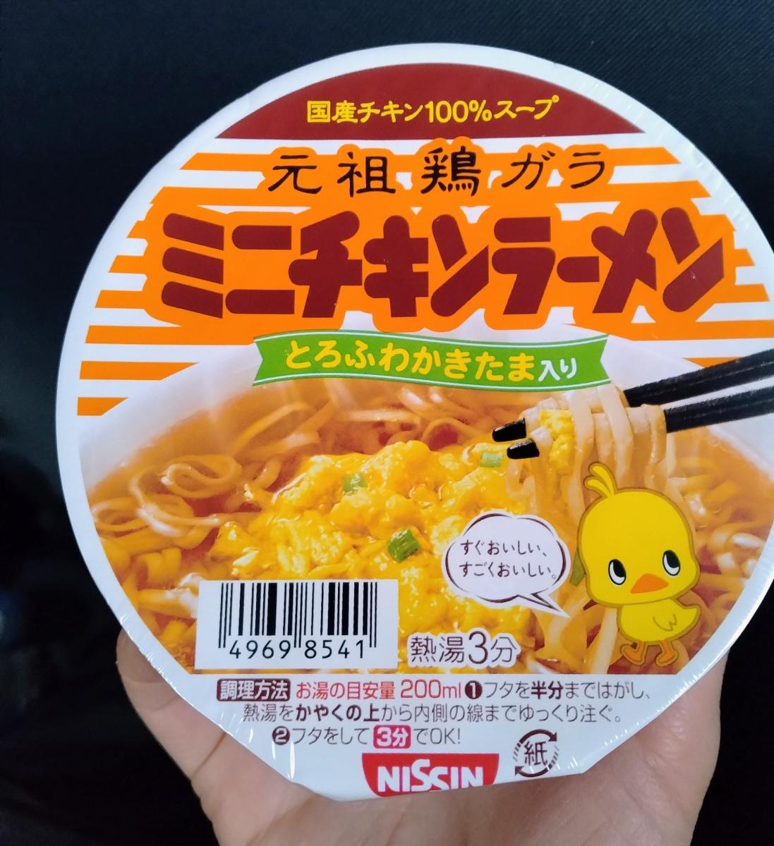 チキンラーメン、たまに無性に食べたくなり、このミニサイズで手軽なカップタイプを頂きました。あっさりしたしょうゆ鶏ガラスープとチキン味の麺、ふわとろした卵の具、どれもバランスよく小腹も満たすにちょうど良かったです。