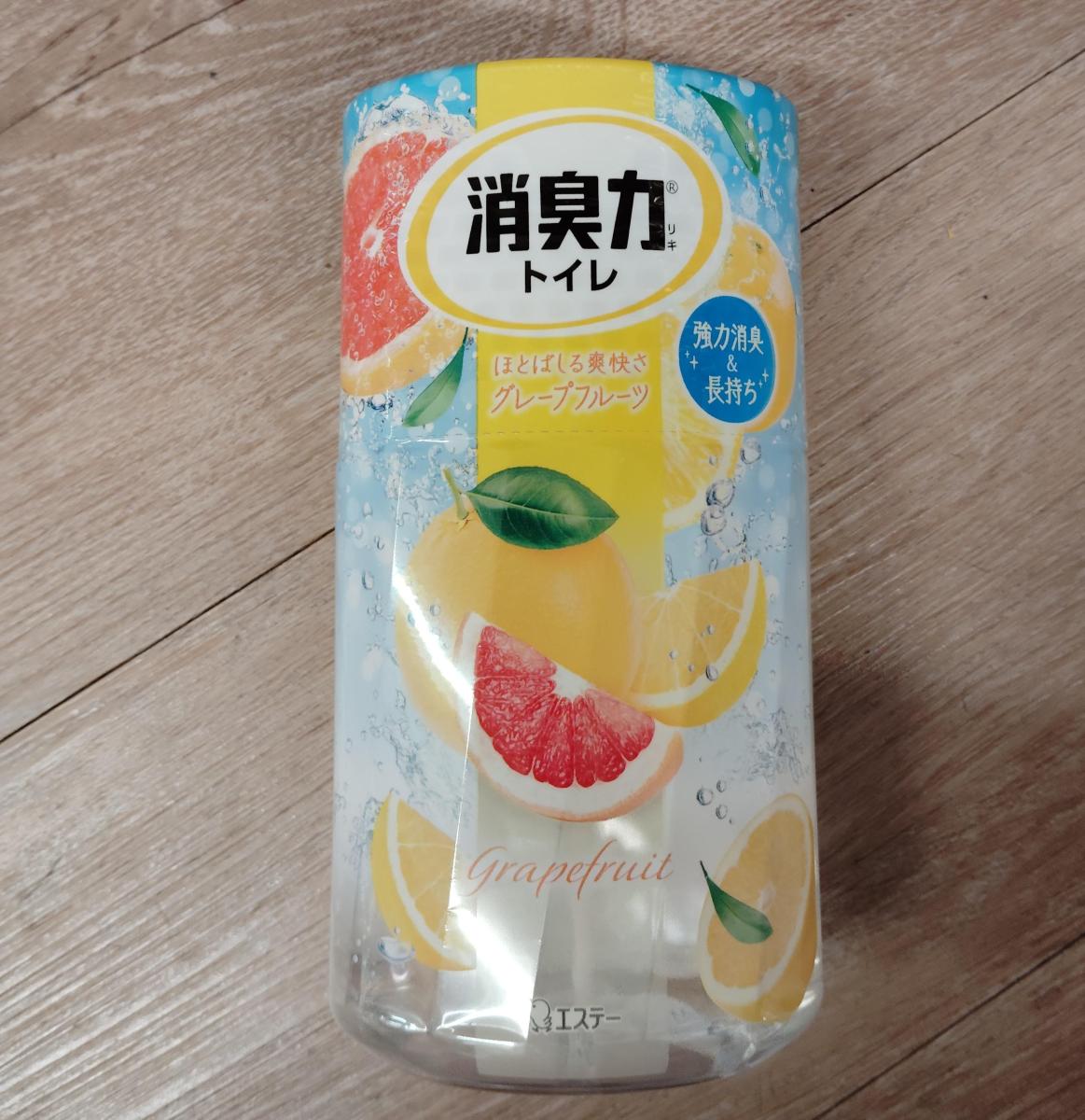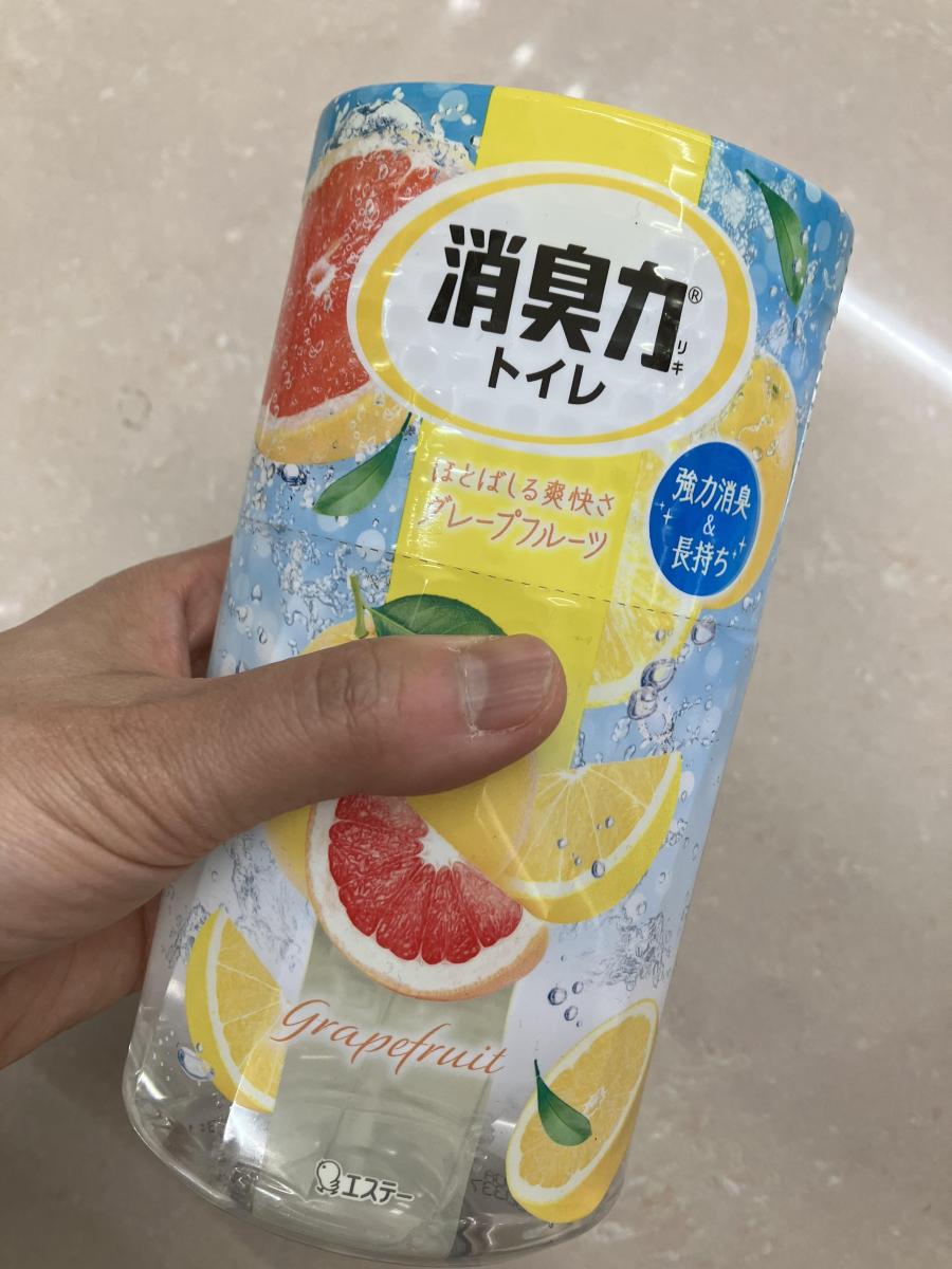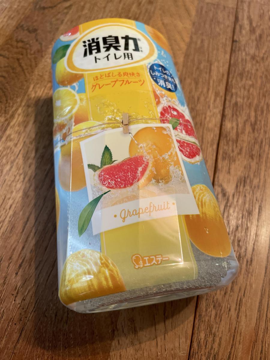 パッケージがグレープフルーツで爽やかな感じがしたので購入しました。色合いも夏らしくこれからの時期にピッタリです。トイレの空間が爽やかな香りになり良いです。消臭力はコスパも良いので、有り難いです。