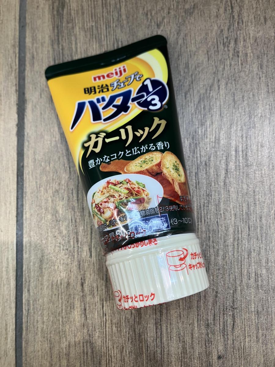 明治チューブでバター1/3、使い勝手抜群なのでいつも愛用していますが、ガーリックバージョンが出ていたので買ってみました。こちらもとてもまろやかな味わいです、ガーリックの香りもしっかり感じられ大いに食欲を誘います。ガーリックトーストにガーリックライスに、また味噌ラーメンにトッピングしても美味しく頂けました。お値段200円程度ととてもリーズナブルだと思いました。現在、明治さんでディズニーキャンペーン実施中なので応募したいと思います。