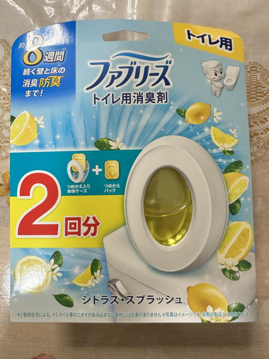 爽やかなシトラスの香りで、トイレに入る度に癒されます。トイレの壁や床についた嫌な臭いもコレを置くだけで消臭されるのでとても便利です。小さいので、トイレでも邪魔にはならず、でも消臭力な高いので嬉しいですね。8週間ももつのが、良いです。