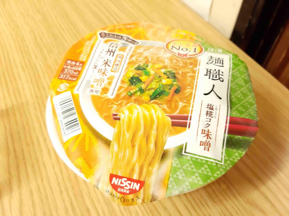 こちらの「麺職人」はノンフライ麺と言うことで、ジャンキーな中にも少し安心感があります。