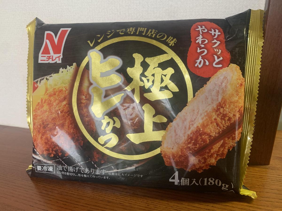 少し値段の高めな【極上ヒレかつ】大きめのカツが4個入っていて電子レンジで調理できます。衣で誤魔化してる感じもなく、しっかり肉厚なお肉が入っていて、満足出来る味でした。