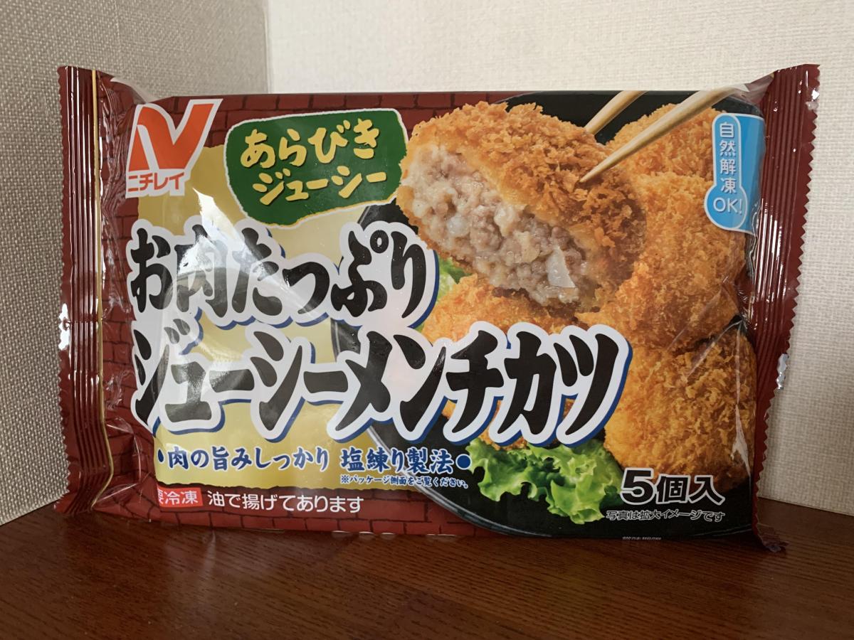 ジューシーなメンチカツで美味しかったです。自然解凍OKなのでお弁当に入れやすくて便利です。パンに挟んで食べても美味しいと思いました。