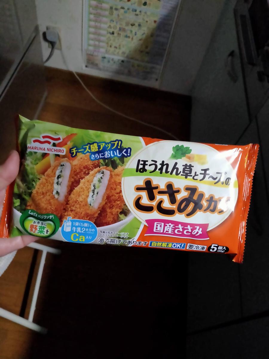 マルハニチロのほうれん草とチーズのささみカツはスーパーで購入しました。こちらの商品は結構前からありますよね。何回か購入してます。ささみの中にチーズと細かくなったほうれん草が入っていて、お弁当にピッタリです。