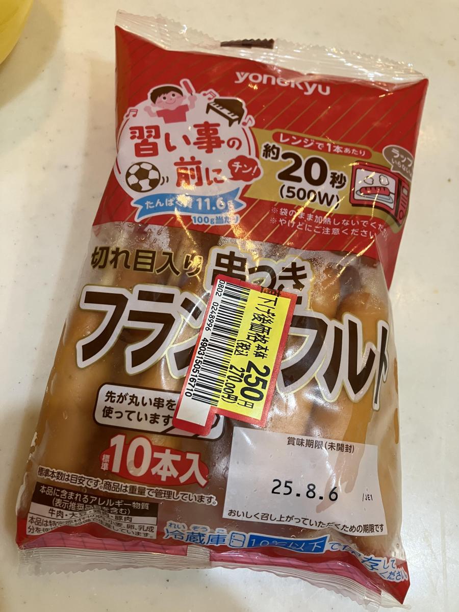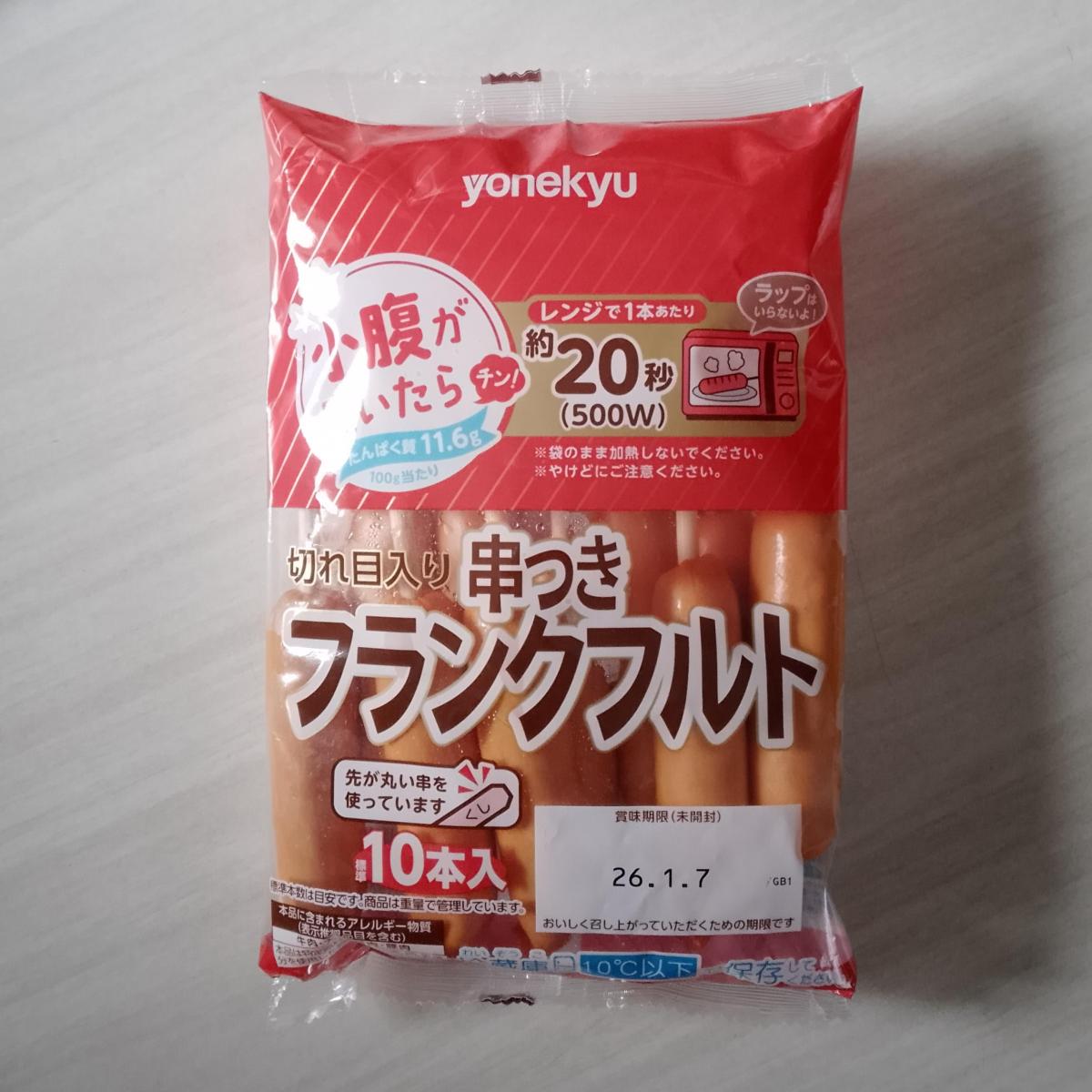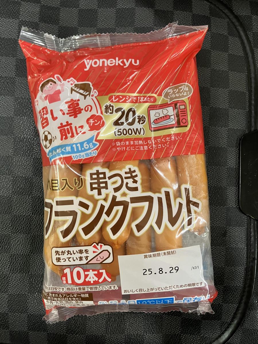 バーベキューをやった時に購入。はじめからフランクフルトに切れ目が入っている上に串も刺さっていてとにかく便利です。焼くとジューシーでパリパリしていて美味しいです。10本入りでコスパが良いです。