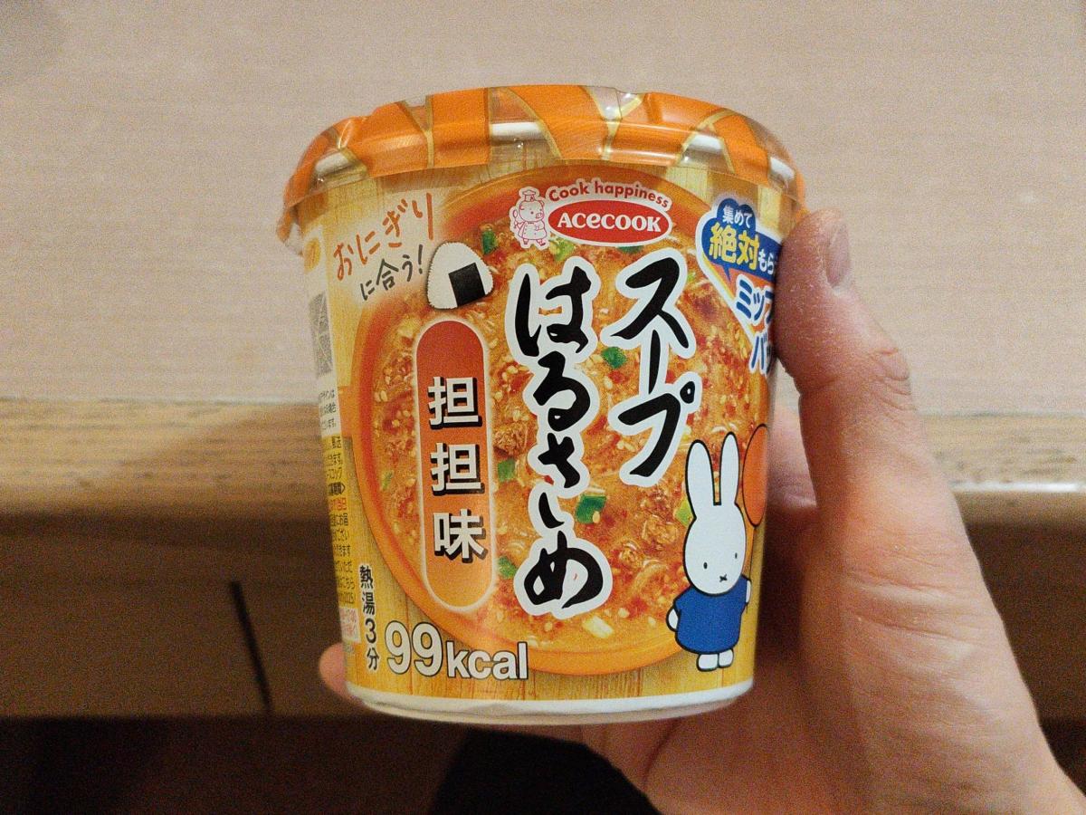 お気に入りのカップスープシリーズのひとつ!スープはるさめの、今回は担担味購入してみました。実は辛いのはそこまで得意ではないのですが、ドキドキしながら食べたところピリッと少し香辛料がきいているかんじでとてもちょうど良い辛さでした!担々麺感もあるので食べ応えもバッチリ、おにぎりともよく合うな〜お思いました!激辛好きな人には物足りないかも笑?でした。安売りしてたので100円くらいでコスパも最強でした!