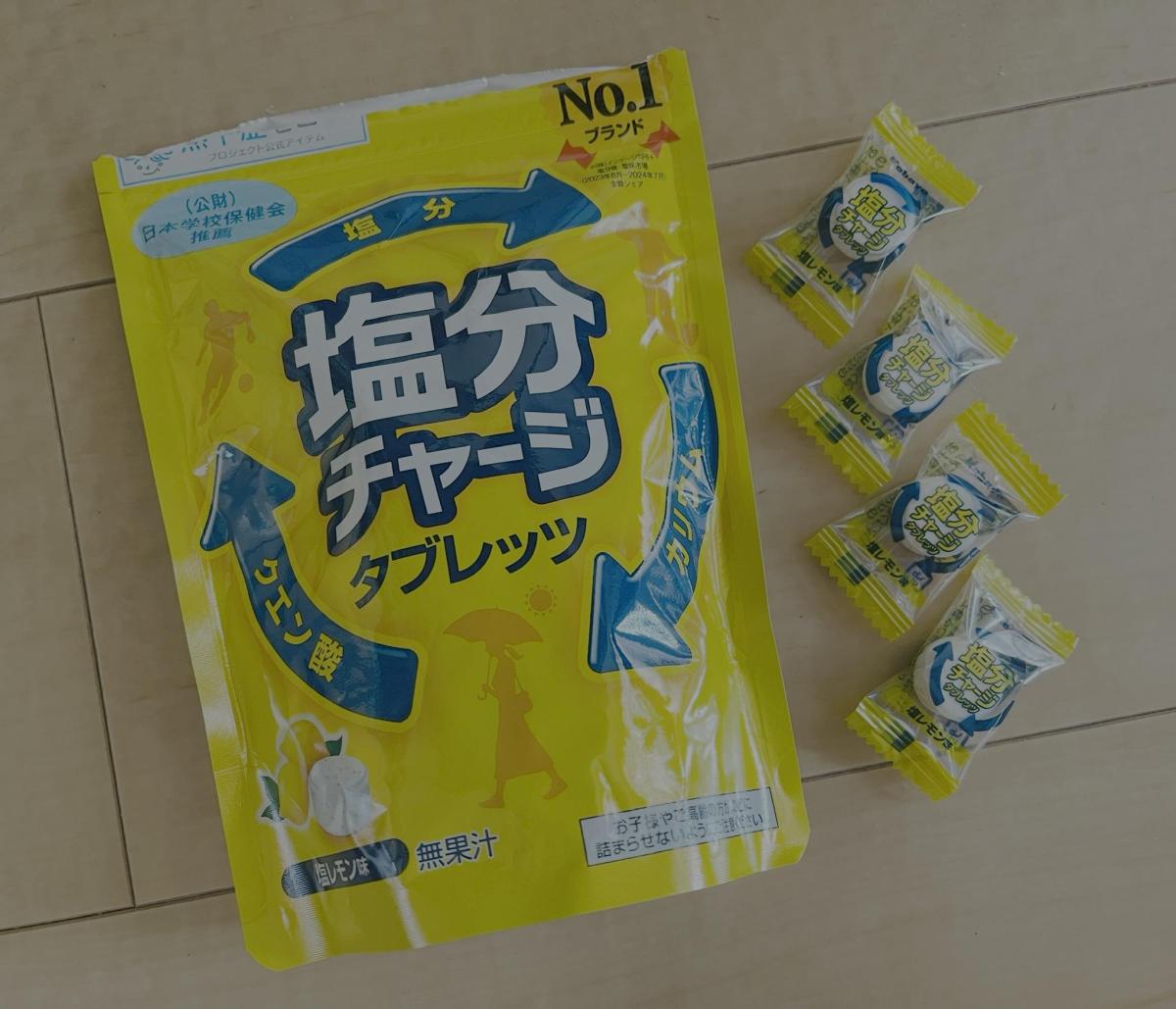 今の暑さの塩分補給にピッタリのタブレットです。レモンの味で塩味もあり、汗をかいたり運動をしたあとに食べたくなる商品です。熱中症対策に、バッグに入れておくのも良いなと思いました。
