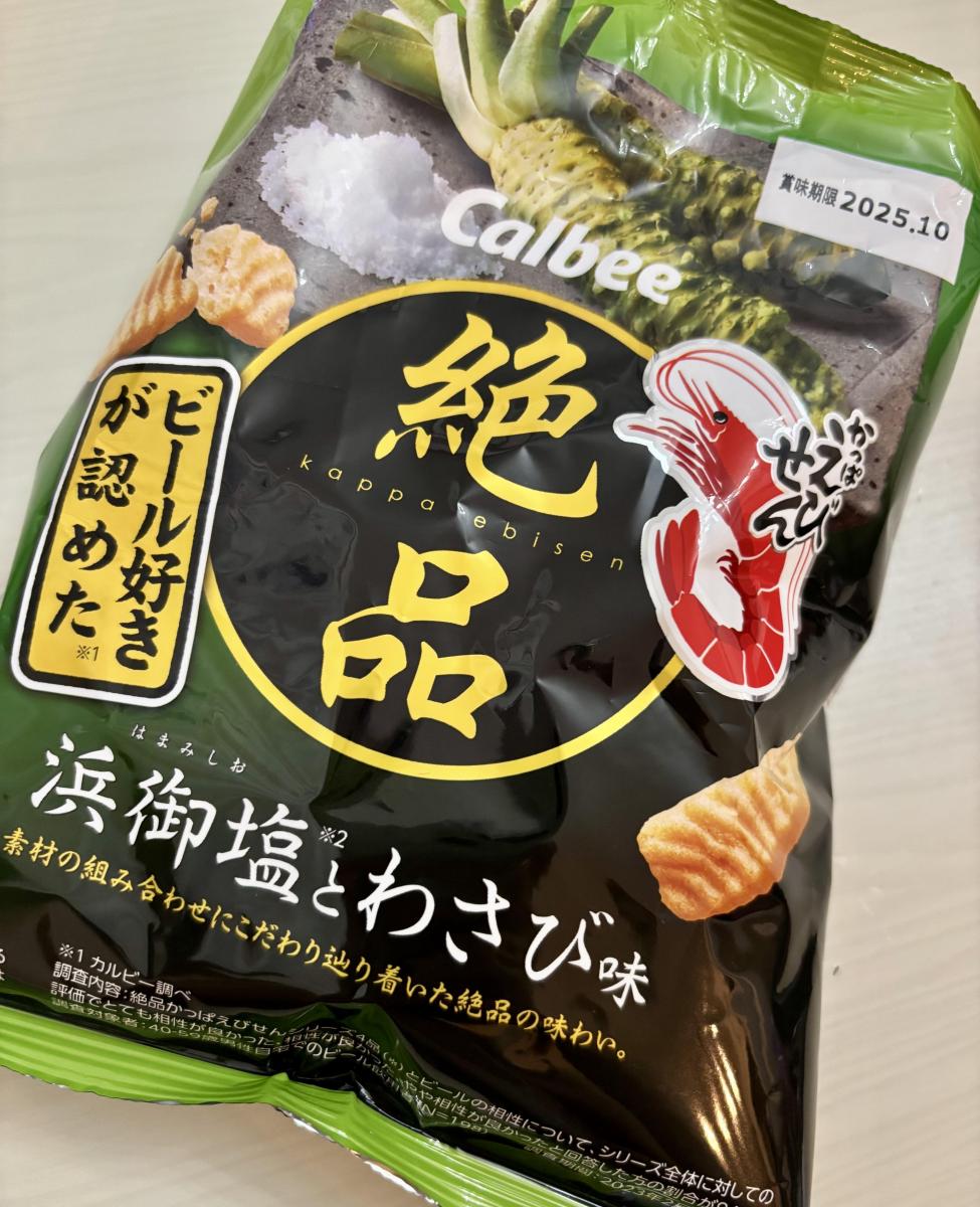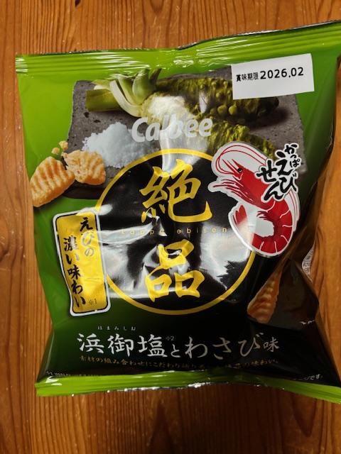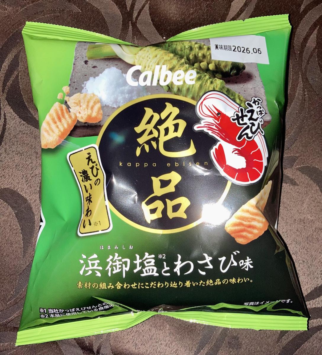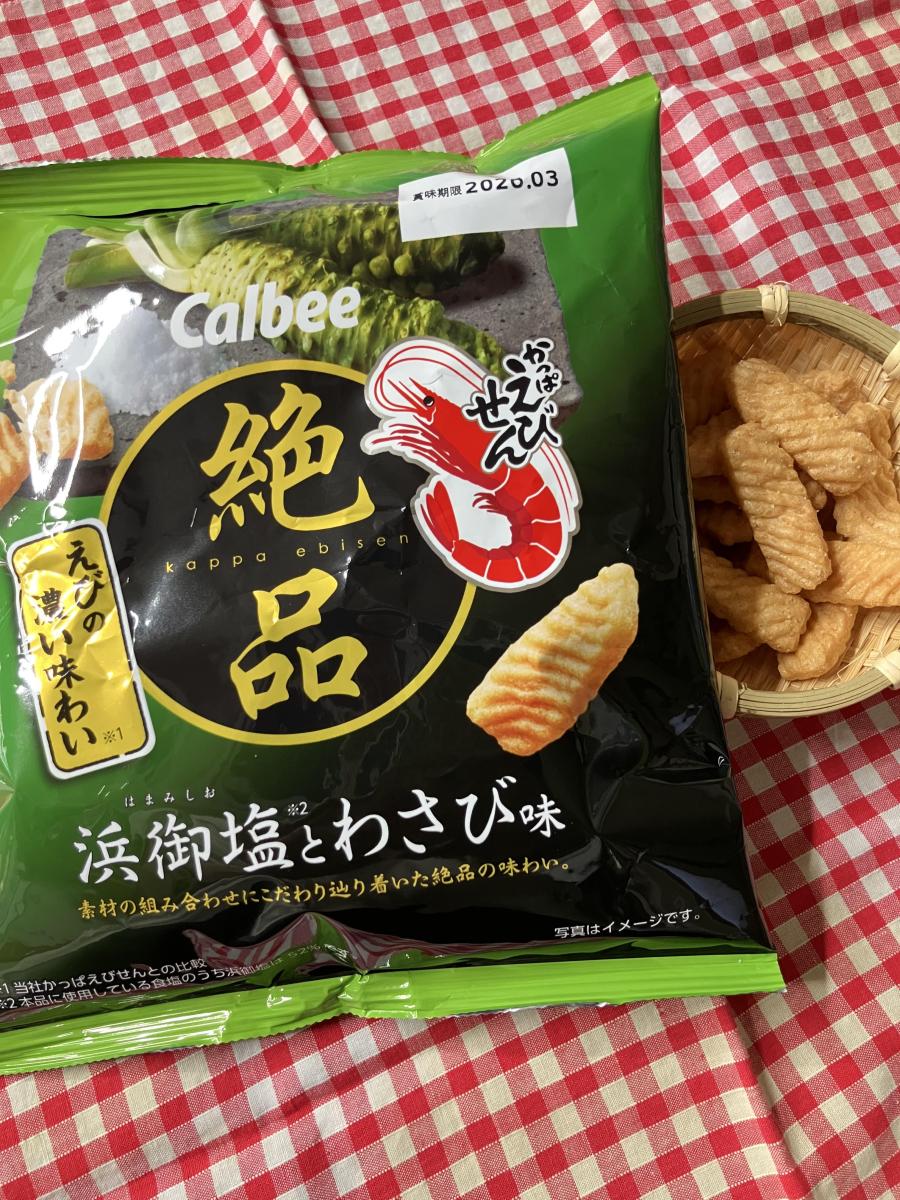 ザクザク食感のかっぱえびせんに塩とわさびの味わいが効いていて美味しいです。