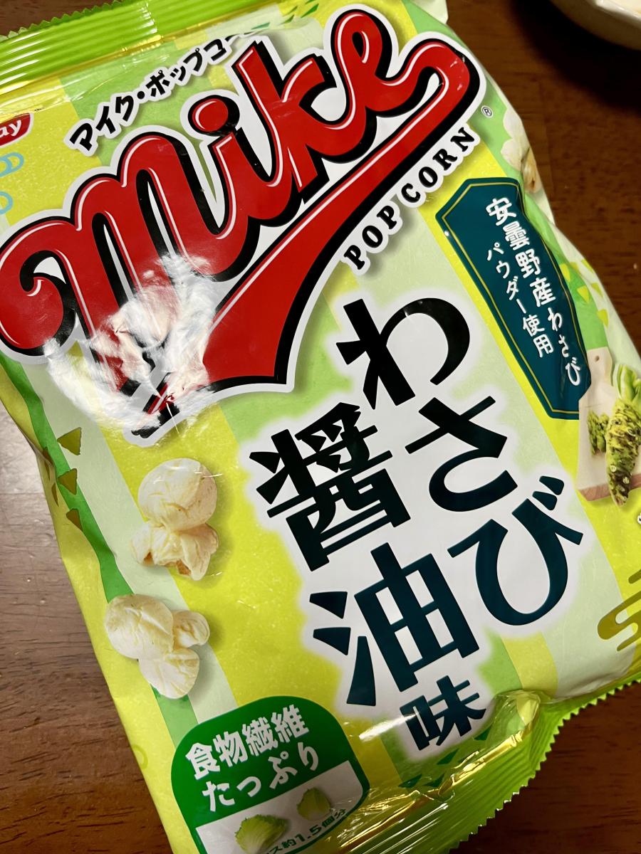 さまざまなバリエーションがあるマイクポップコーンですが、これは珍しいわさび醤油味です。ほどよい強さのわさびの風味があり、少し鼻にツンときますが他にはない美味しさです。