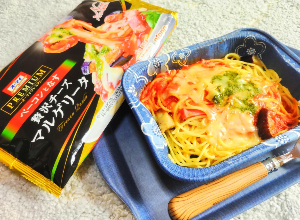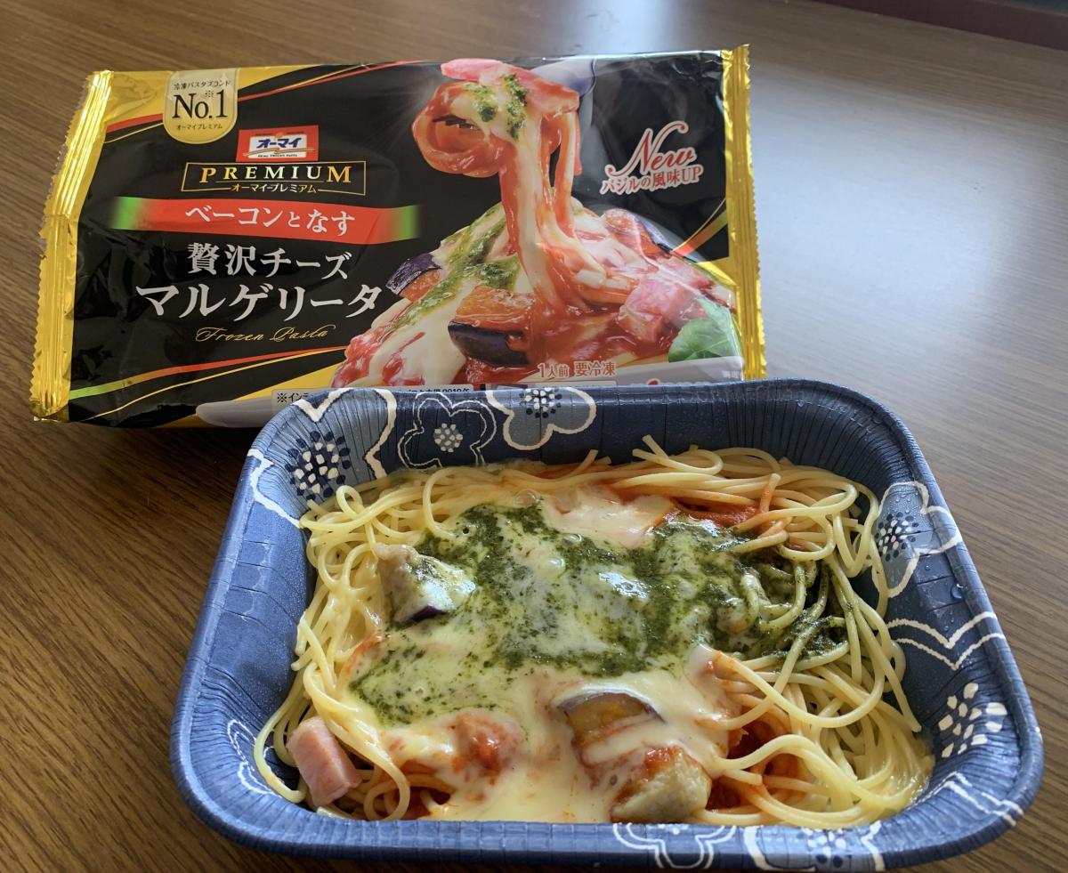 パスタにマルゲリータというのは初めてだが、ピザと同じイタリアンで、味つけとしての違和感があるわけではないだろうなと思いながら食べてみると、まあ、想像どおりだなという感じ。マルゲリータの3つの要素であるチーズ、トマト、バシル、がすべて揃っていて、味わいからも確かにマルゲリータを感じることができる。本来ピサのマルゲリータはシンプルなものだが、冷凍バスタでそれは物足りないという考えからか、これにはベーコンが入っていて、これも食べてみての違和感はない。全体の感想としてはパスタよりもチーズをはじめとした具材を食べるパスタという印象で、イタリアン好きにはこの具材はたまらないははず、と思った。