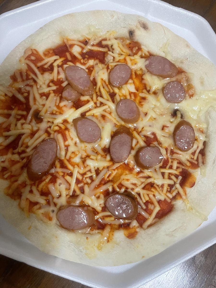 ピザ生地は薄っぺらいですがモチモチ感はあります。大きさも1人分といった感じでシェアするほどの大きさではありません。薄くスライスされたシャウエッセンが乗っています。シャウエッセンに到達した時に旨味が爆発します。チーズ大好きなのでチーズが物足りなく感じてしまいましたが美味しかったです。
