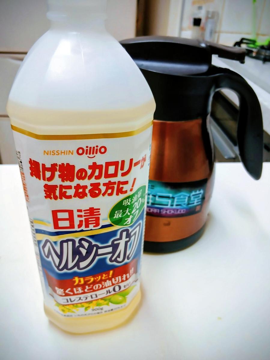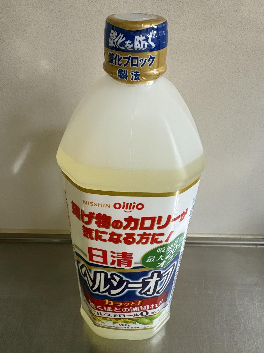 実はどの油も違いが分からないのだが、ヘルシーオフという商品名、コレステロールゼロ、そして当日特売していたのが決め手で購入。衣や温度、揚げる時間で変わるとは思うが、今のところカラッと揚がっている。自分で揚げる訳では無いので偉そうに言えないが、揚げてくれた人曰く、油切れが良い、との事でした。
