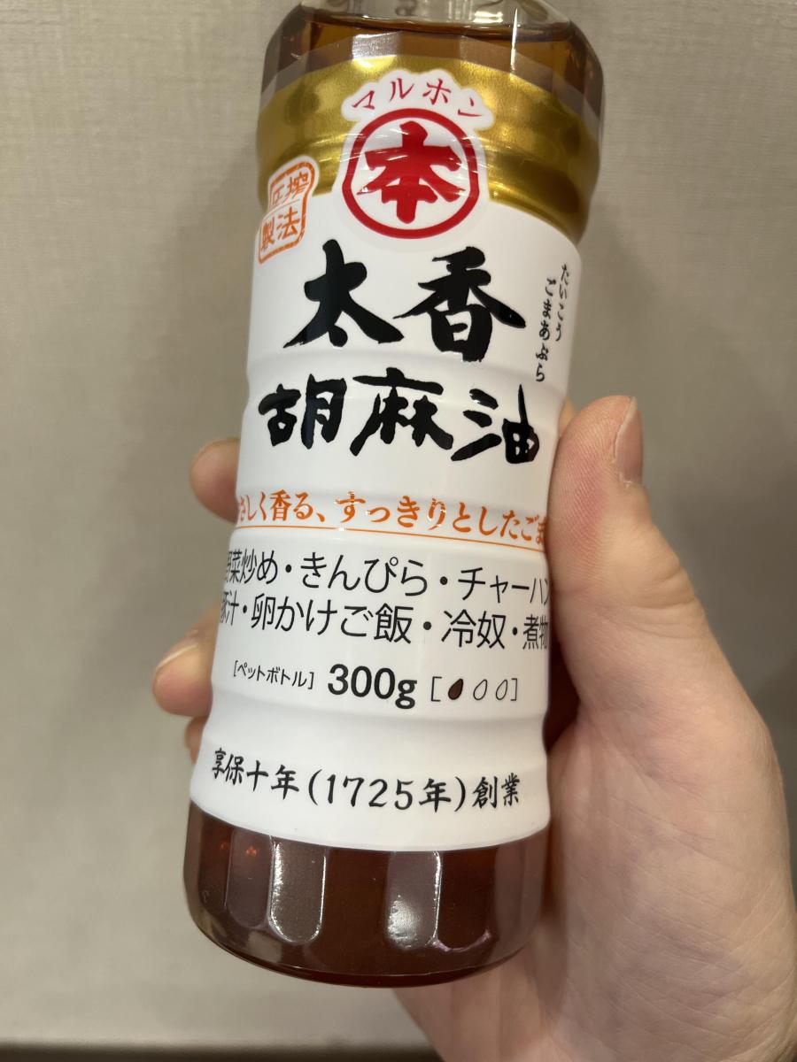 普段使用のごま油が無くなったため、店頭で目立っていたこちらを購入。マルホンの太香胡麻油。