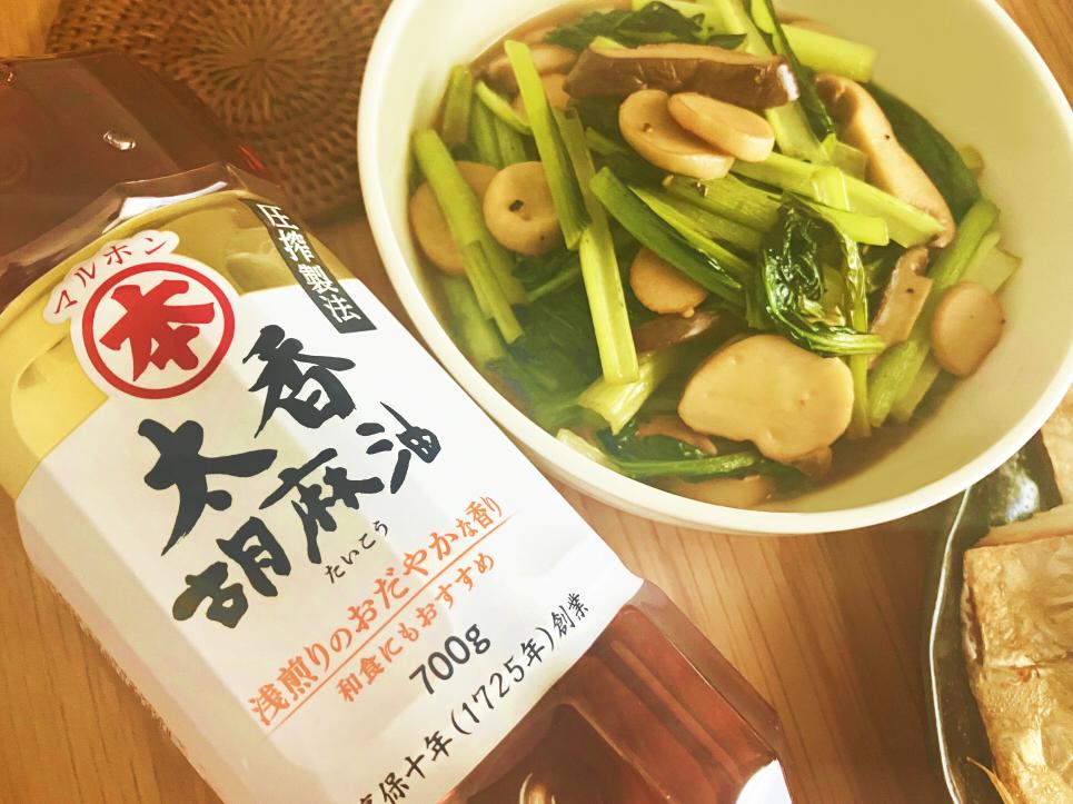 このごま油を使うと、味付けがシンプルでも纏まるので、